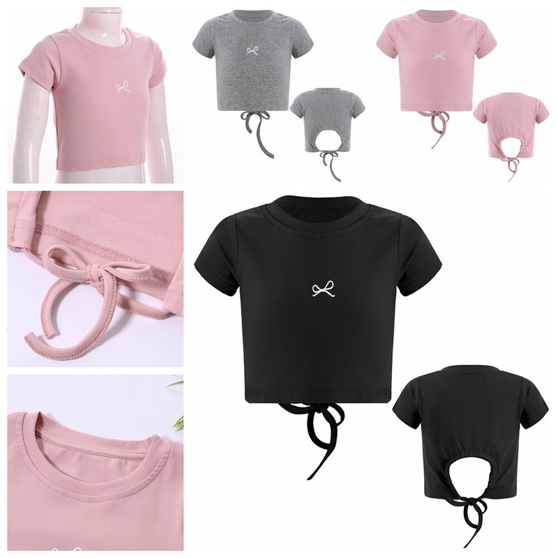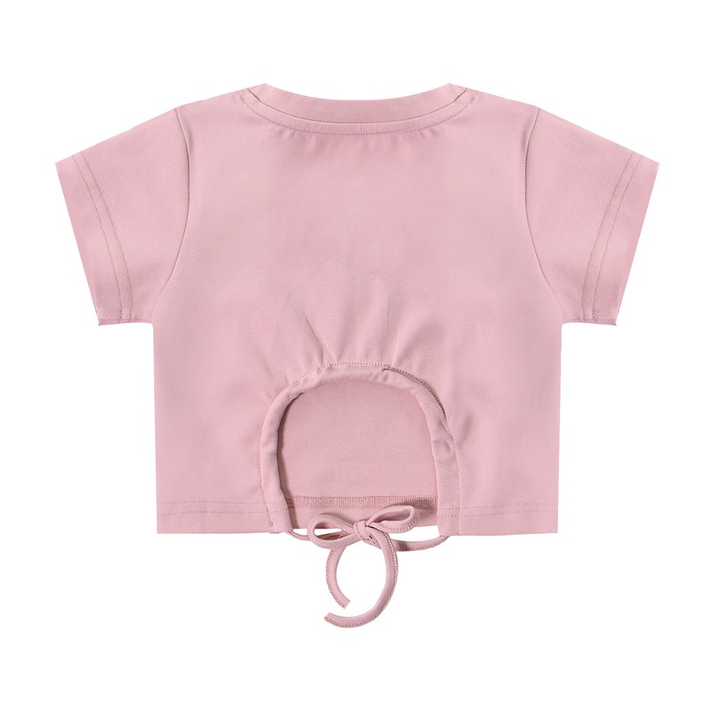 Girl’s crop top makes your child cute and stylish with bow embroidery and cutout back lace-up design.