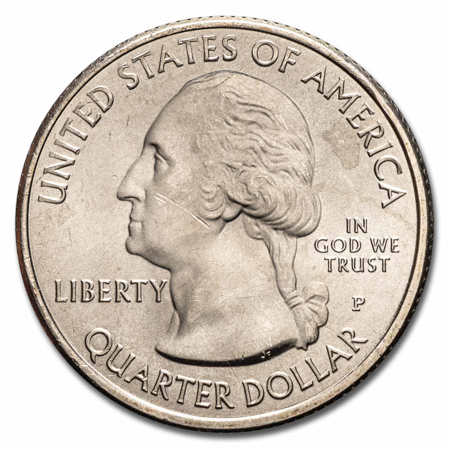 - Obverse: Portrait of George Washington originally designed by John Flanagan, with the inscriptions of United States of America, Liberty, In God We Trust and Quarter Dollar.