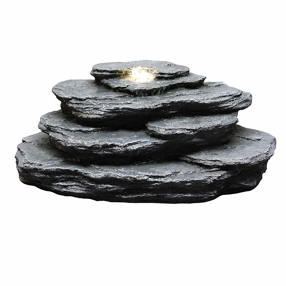 - Wasserspiel mit Beleuchtung: Die beleuchtete Quellsteinöffnung sorgt auch bei Dunkelheit für eine stimmungsvolle Atmosphäre.