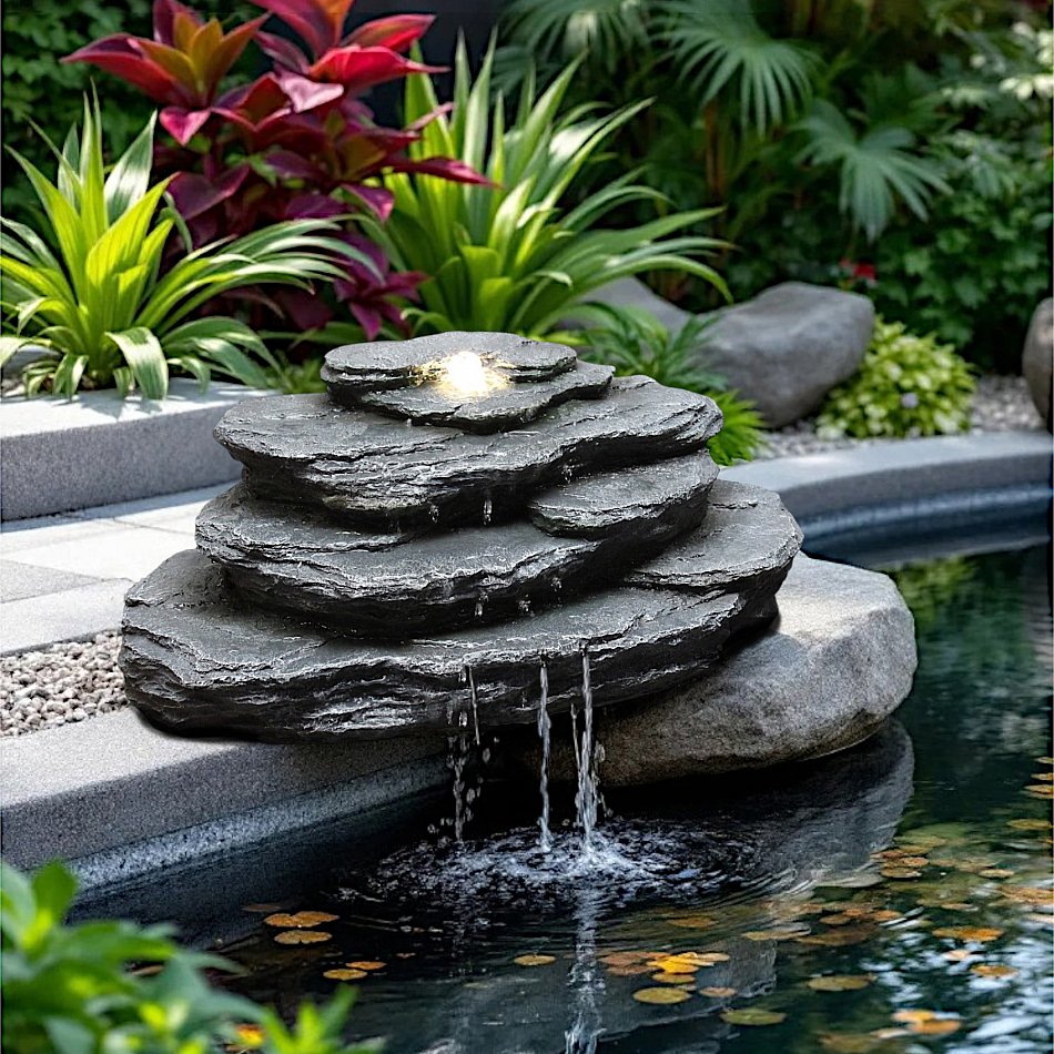 Holen Sie sich den Quellsteinfelsen und schaffen Sie eine atemberaubende Wasserfall-Szene in Ihrem Garten! Genießen Sie die beruhigende Wirkung des Wassers und die naturgetreue Ästhetik dieses hochwertigen Wasserspiels.