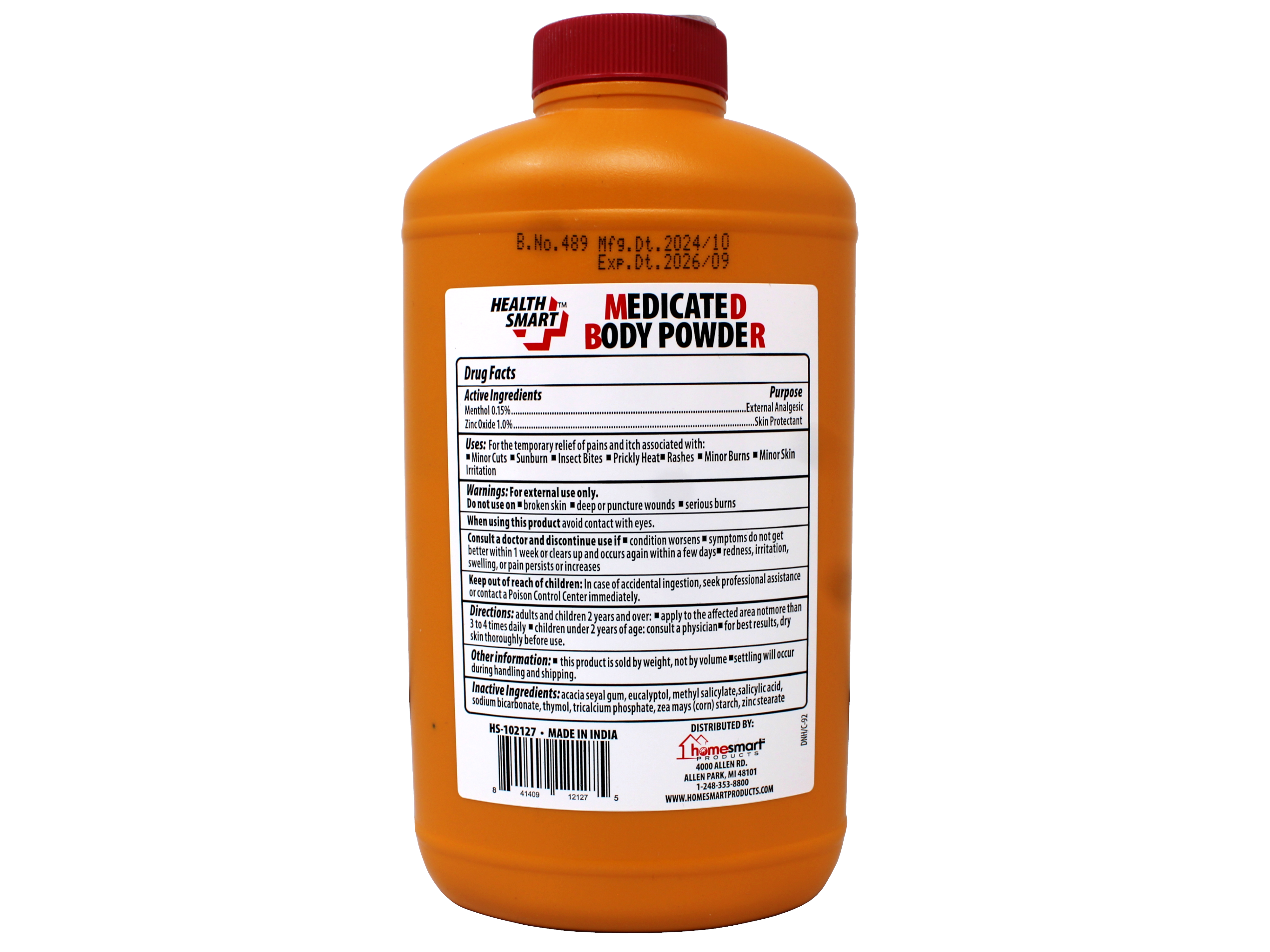 Soothe, cool, and protect your skin with Health Smart Medicated Body Powder. Made with pure cornstarch and enriched with menthol and zinc oxide, this triple-action formula provides fast relief from skin irritation, rashes, and discomfort. The talc-free, gentle powder absorbs moisture effectively, keeping your skin dry and comfortable throughout the day. Ideal for daily use on sensitive areas prone to friction, heat, and moisture build-up, Health Smart Body Powder is a smart choice for maintaining healthy skin. Triple Action Relief: Helps soothe, cool, and protect irritated skin with menthol and zinc oxide. Pure Cornstarch Formula: Talc-free and gentle, ideal for sensitive skin and daily use. Moisture Absorption: Effectively absorbs excess moisture to prevent chafing and discomfort. Medicated Comfort: Provides fast relief from minor skin irritations, rashes, and itching. Cooling Sensation: Menthol delivers a refreshing, cooling feel to soothe overheated or irritated areas. Convenient Size: 8-ounce bottle perfect for home use, gym bags, or travel.
