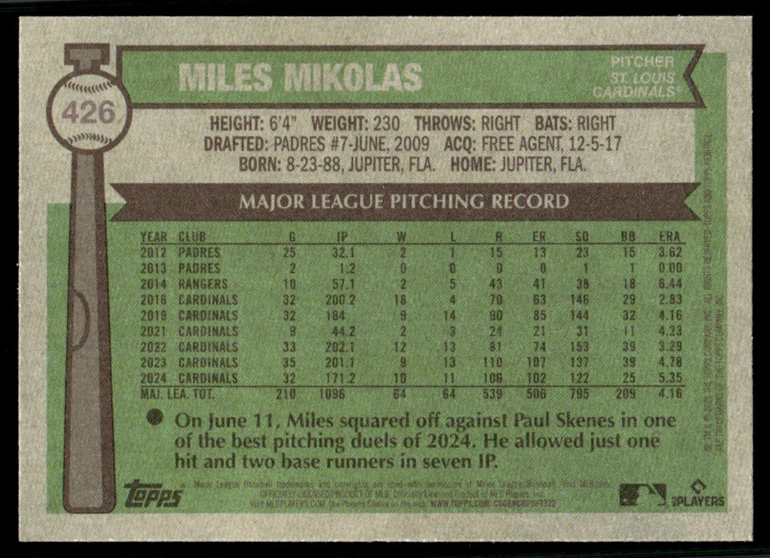2025 Topps Heritage Miles Mikolas St. Louis Cardinals #426 Blue Border High #