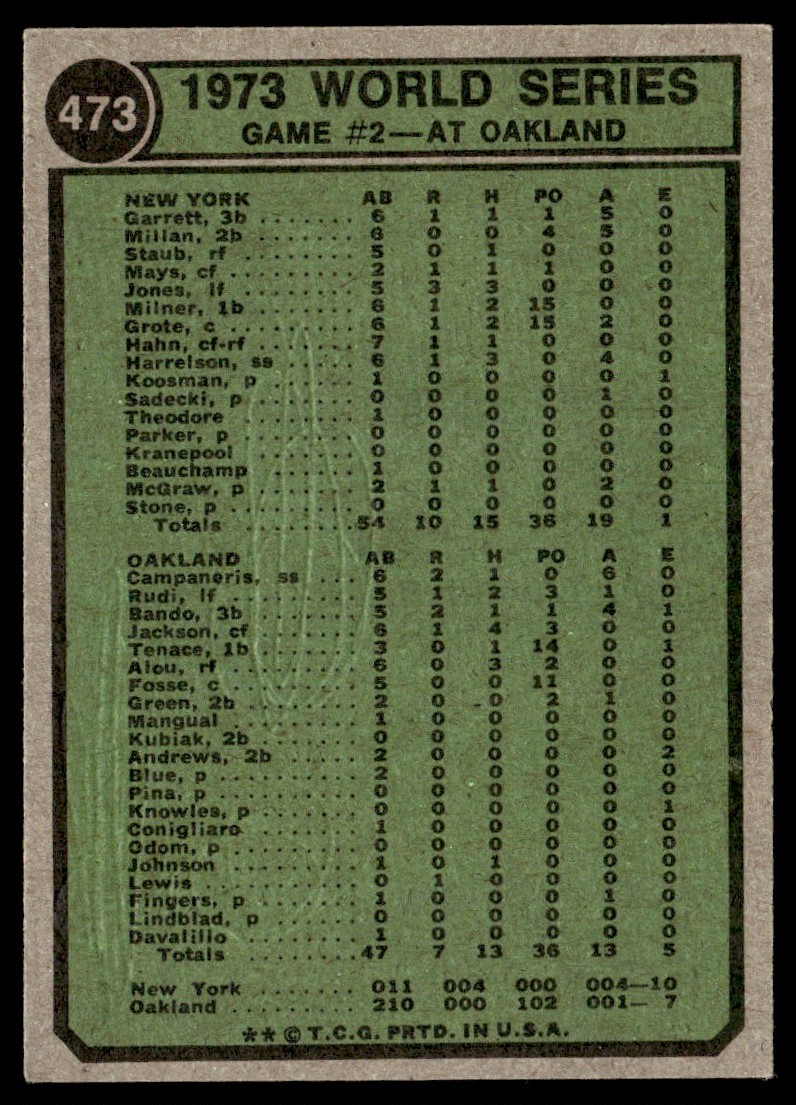 1974 Topps World Series Game 2 - Willie Mays #473 B