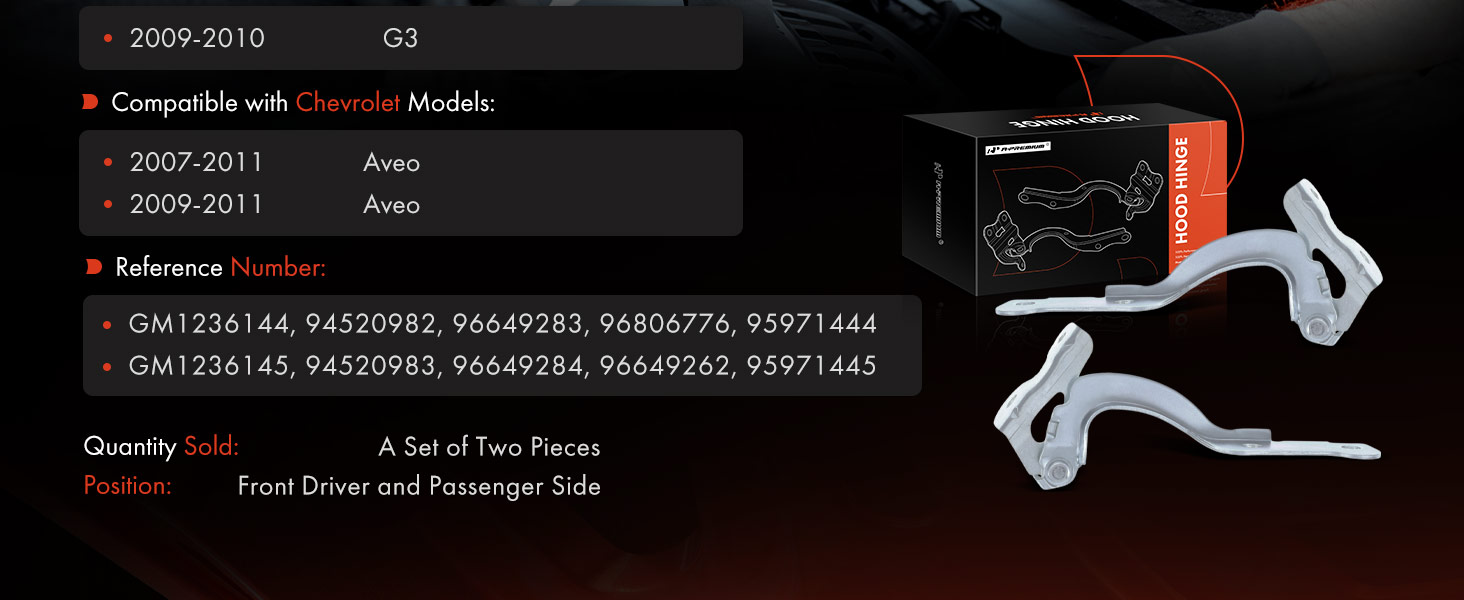 A-Premium 2x Driver & Passenger Hood Hinge for Chevy Aveo 07-11 Aveo5 Pontiac G3