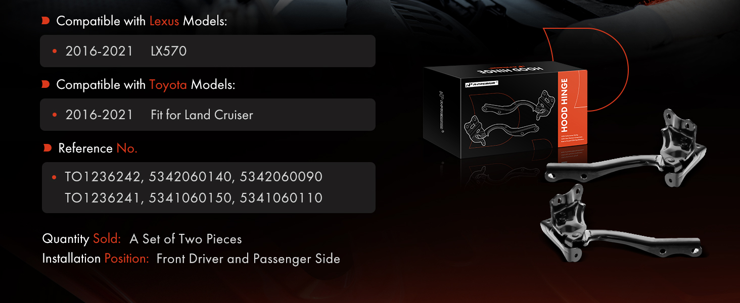 A-Premium 2x Driver & Passenger Hood Hinge for Toyota Land Cruiser Lexus LX570