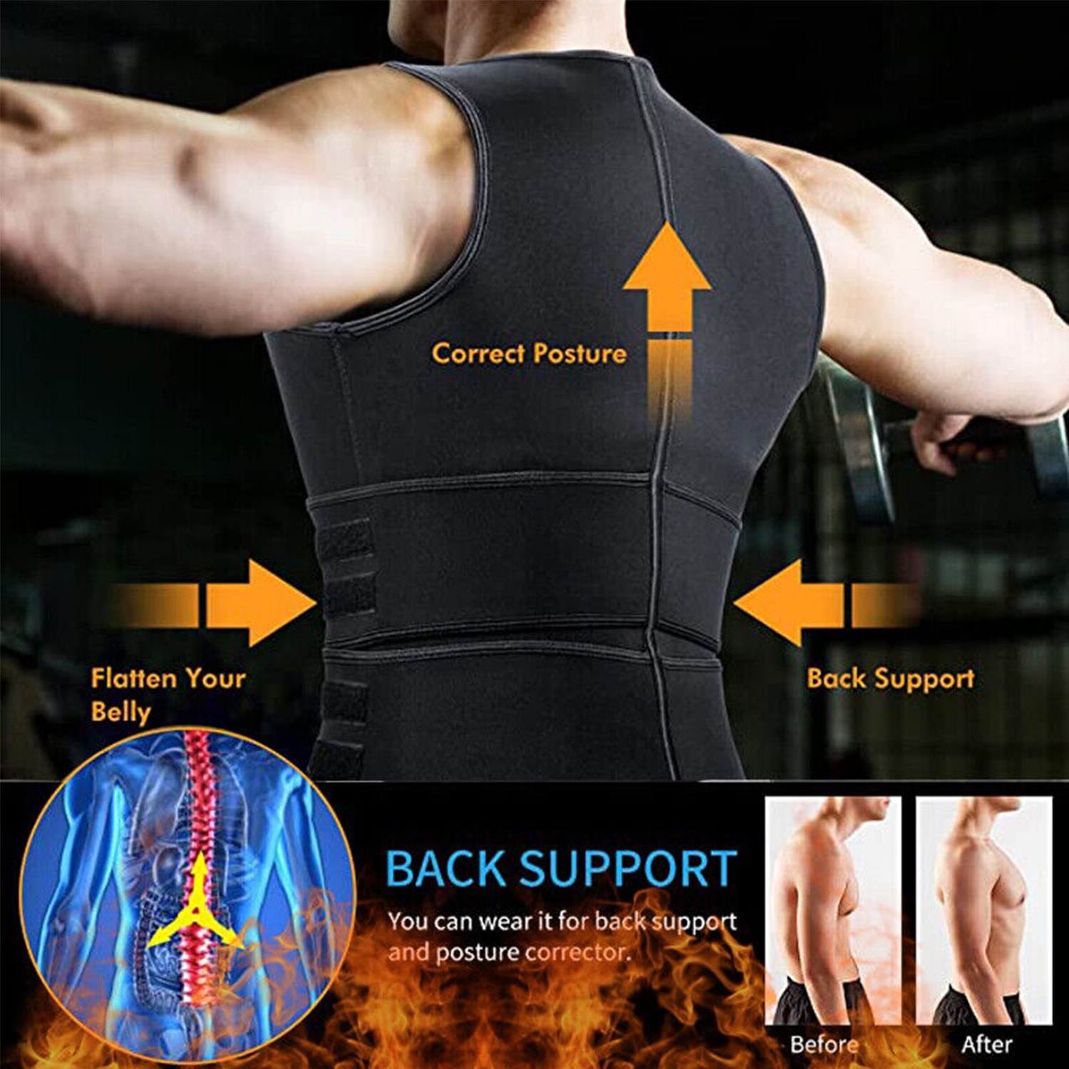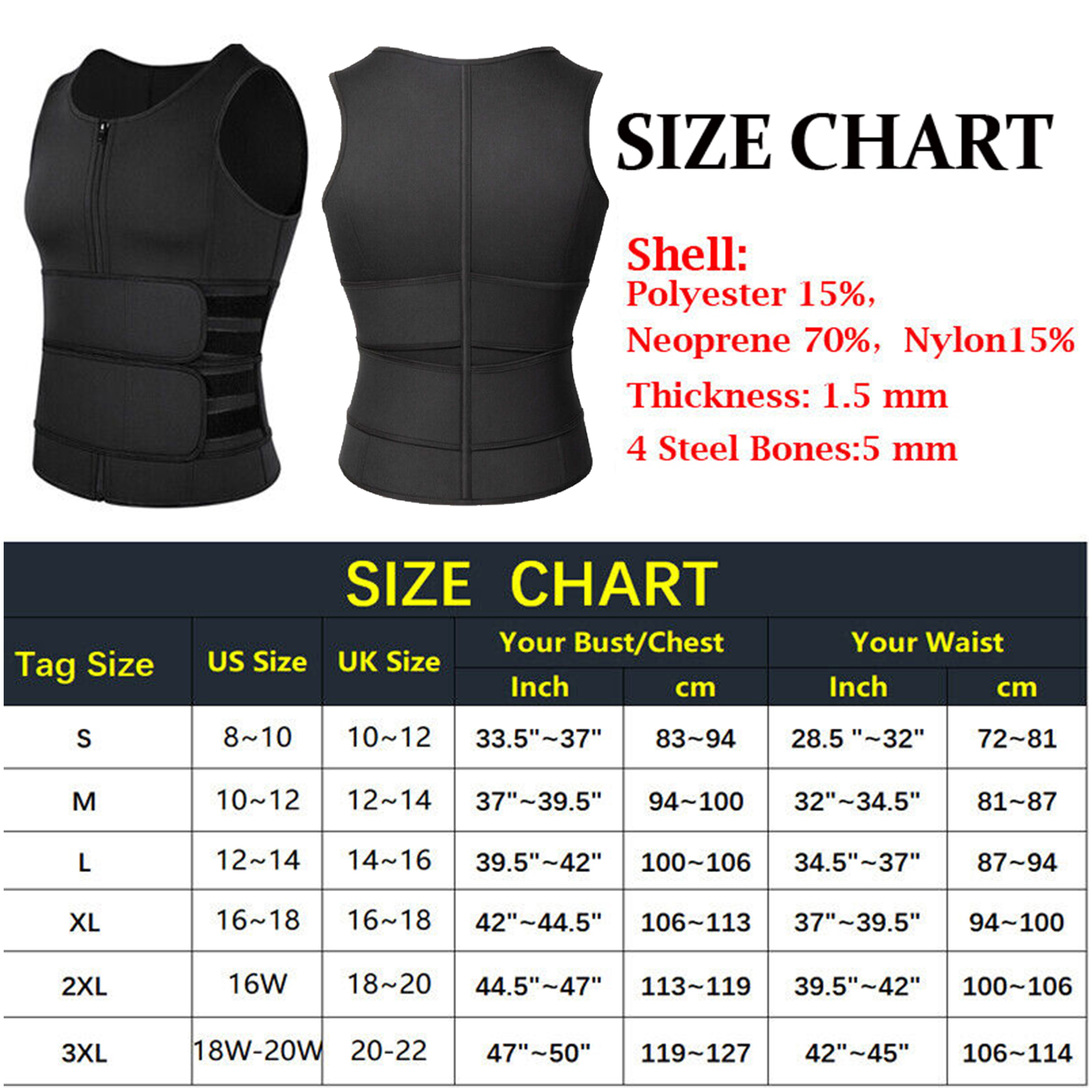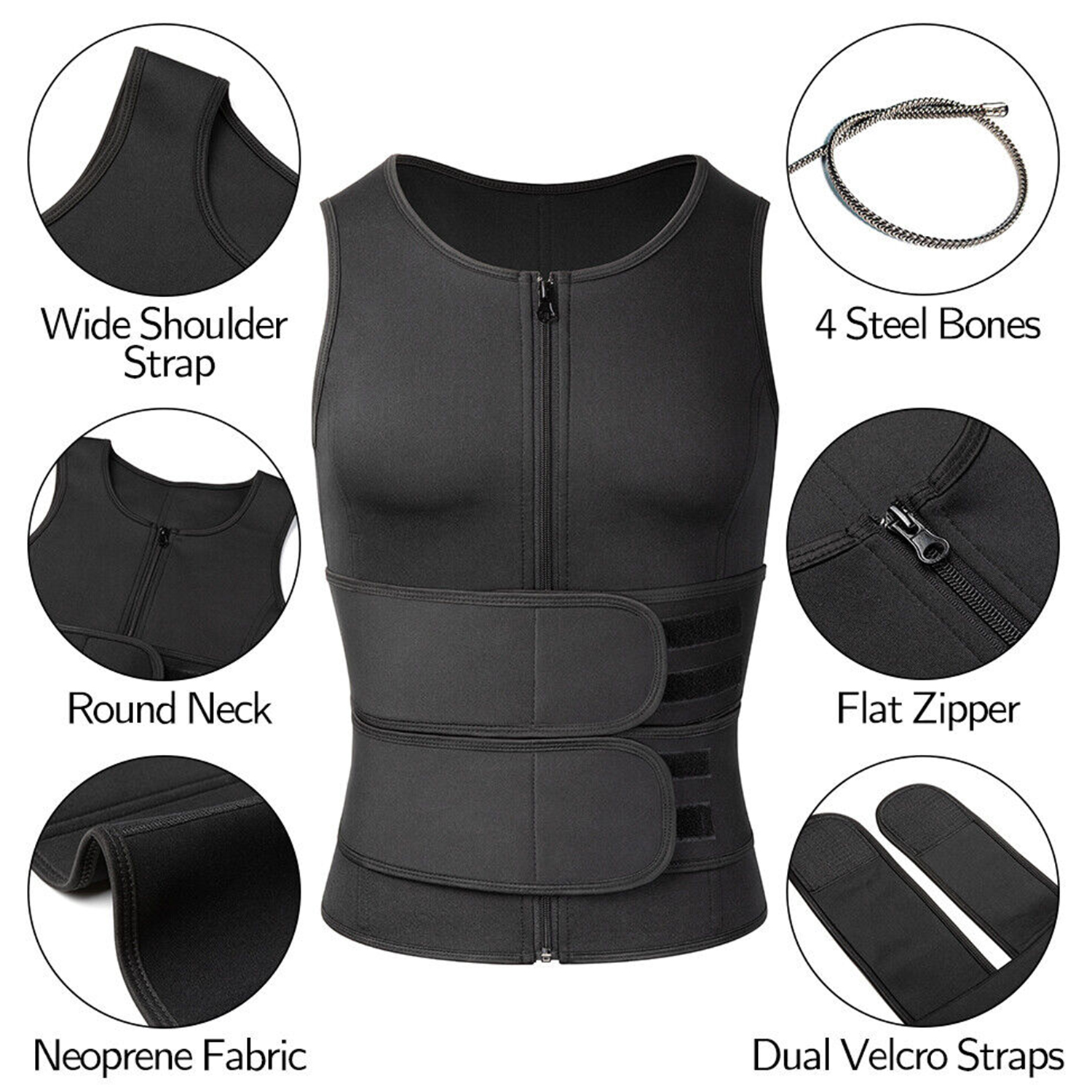 ✔️SUPER COMFORTABLE EXERCISE CLOTHES - We have upgraded the sauna vest with durable anti-slip resinic zipper and extra 3 spiral steel bones to hold the shape and provide solid back support. It's the perfect male corset for the slimmer who exercises to burn fat.