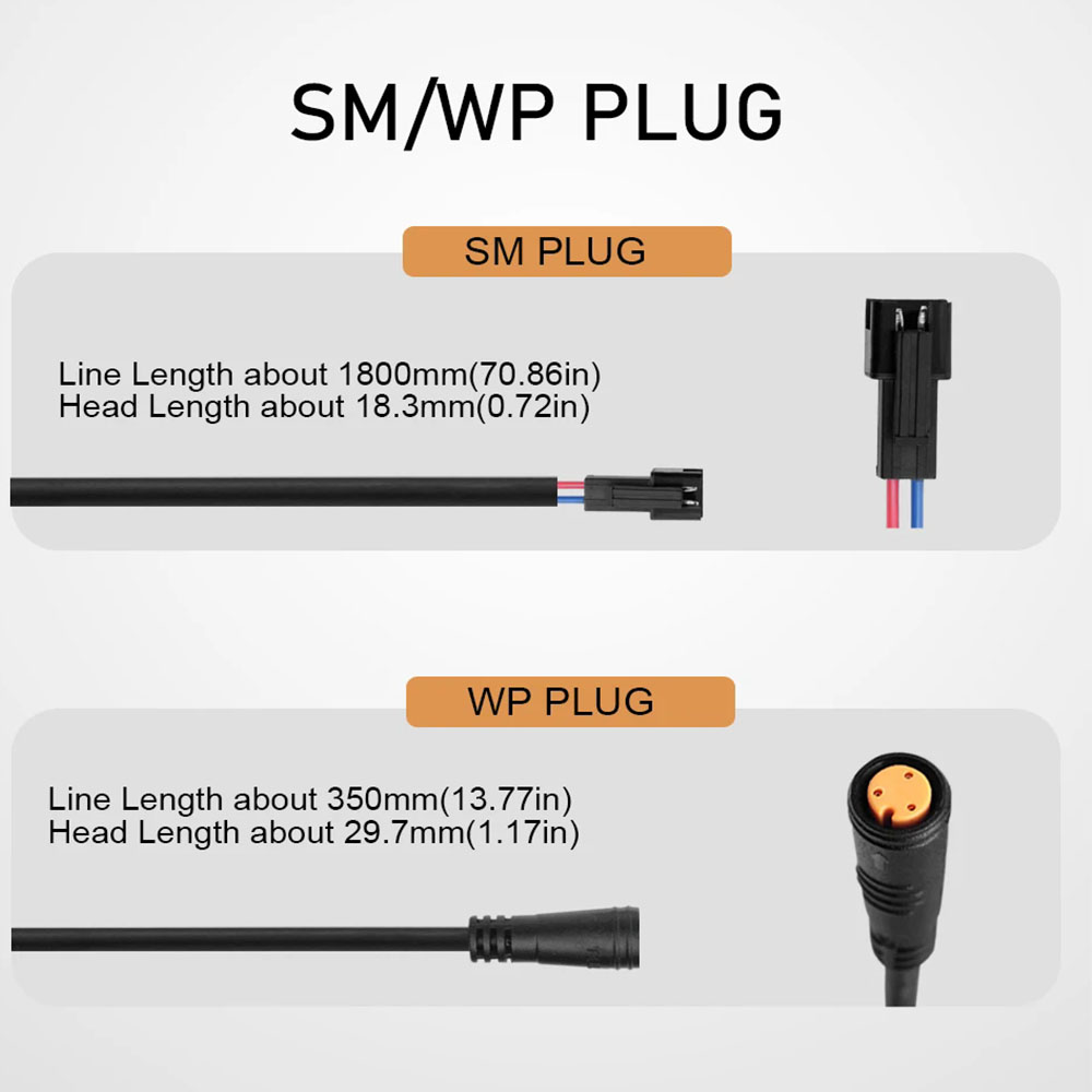 1.3-pin female waterproof connector. Cord length: 35cm with connector.
