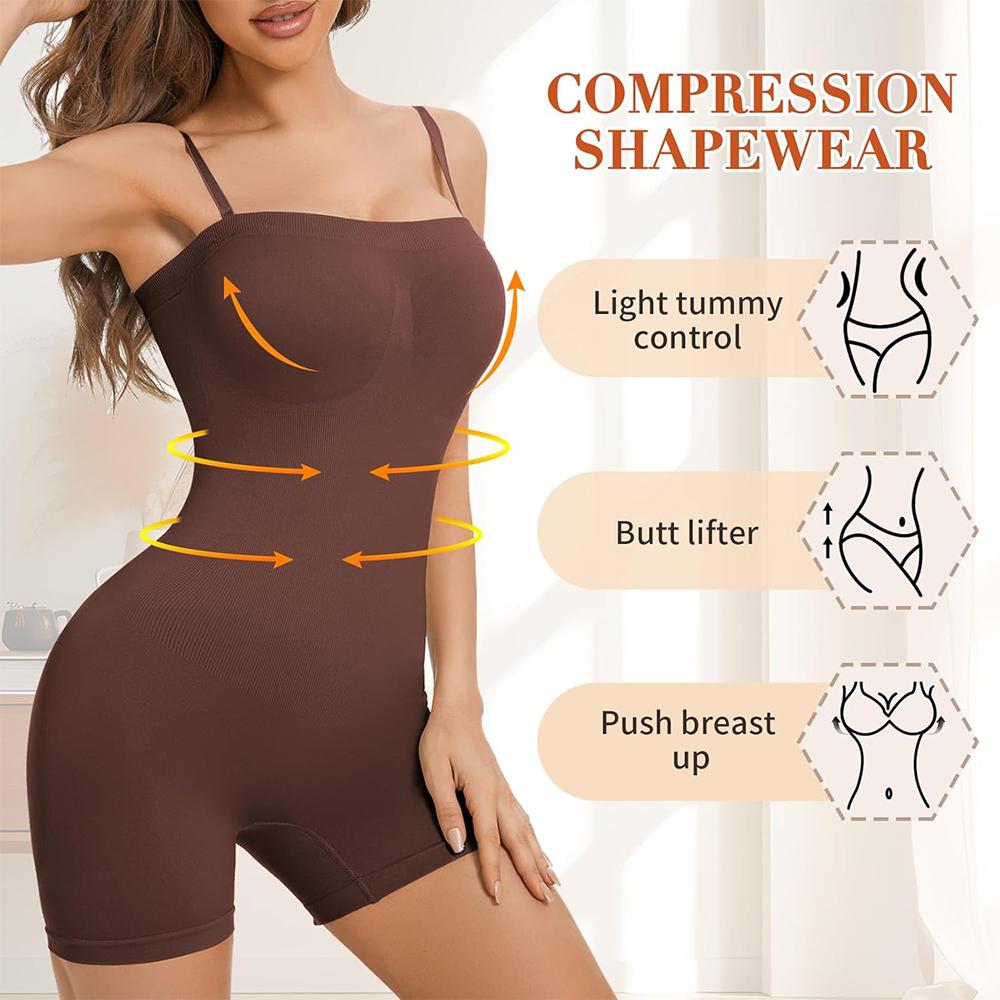 Removable & Adjustable Shoulder Straps- This strapless full body shaper bodysuit with removable adjustable straps, you can adjust it for good fit,no matter you are long torso or short torso.You have more choices for wearing as off shoulder style or adjustable strap just like a cami top.