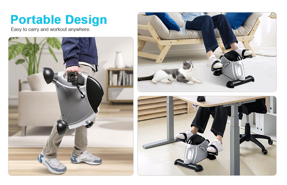 The under desk bike pedal exerciserr with adjustable resistance whirling, you can set different level resistance according to different groups, different exercising degree of difficulty for different exercising period