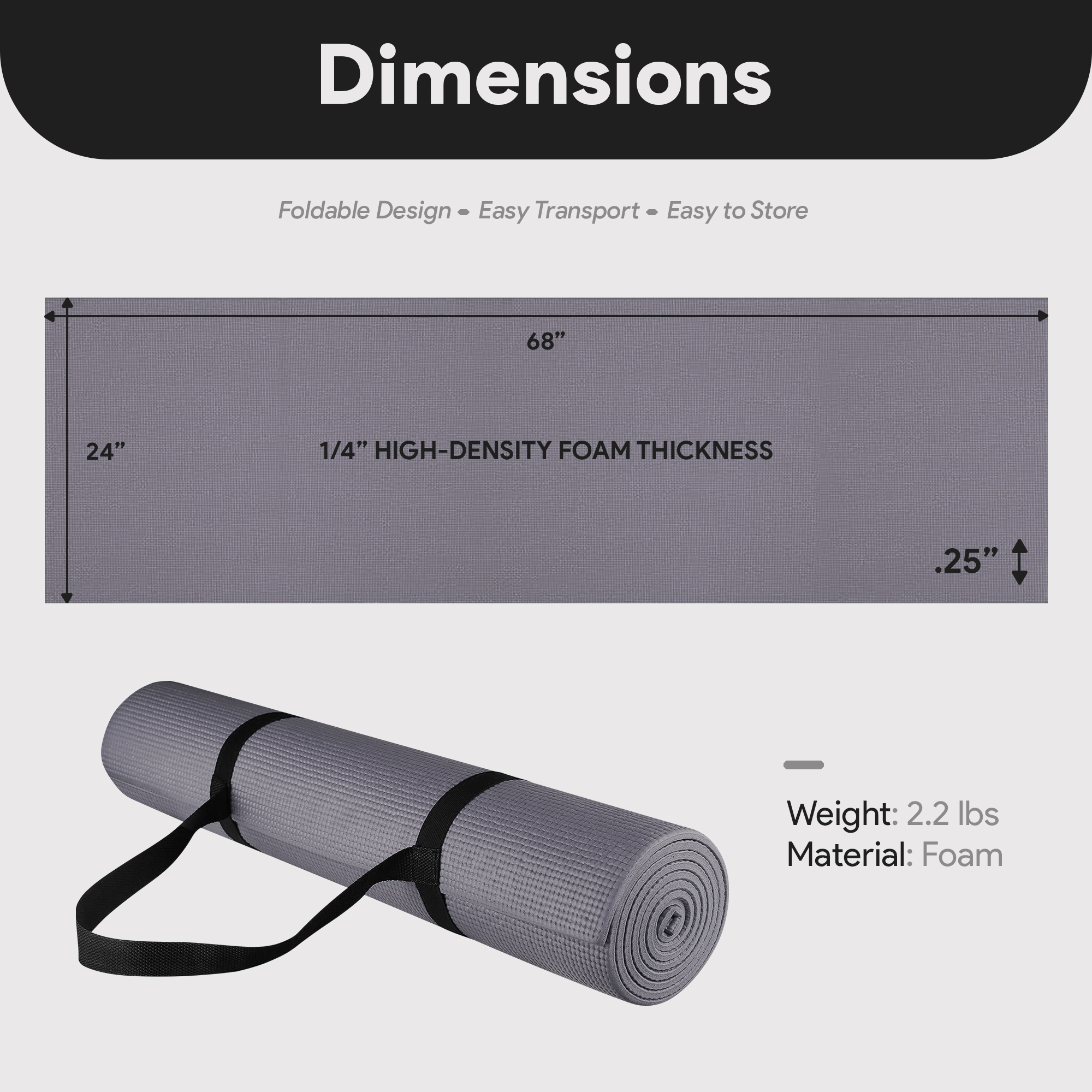 • Dimensions (L x W x H): 68.00 x 24.00 x 0.25 inches