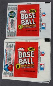 Here is a great 1981 Topps Baseball Card Empty Wax Wrappers Lot of 9 EMPTY 1981 baseball Card Premier Edition 2 different styles Reggie Jackson Stadium Photo Pin and Baseball Caps wax wrappers. It is Awesome. It is marked on front and sides-SEE ALL PHOTOS. It measures about 5 1/2 inches tall by about 6 1/4 inches wide. Grab this great Sports Card Collectible while you still can it will not last long.
