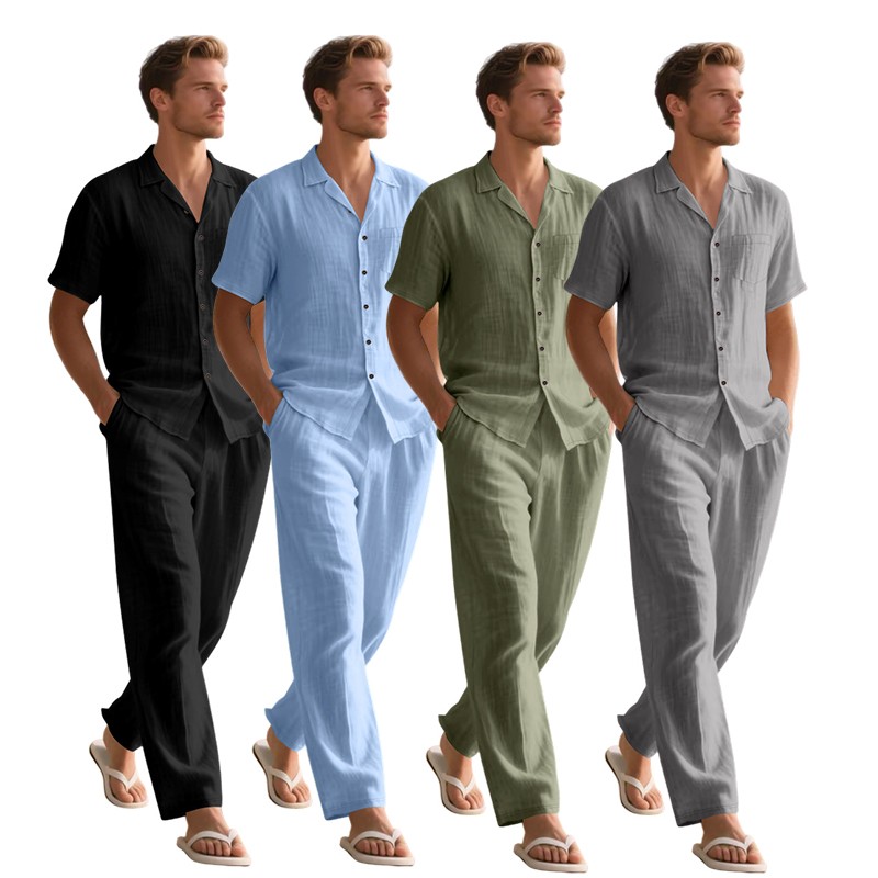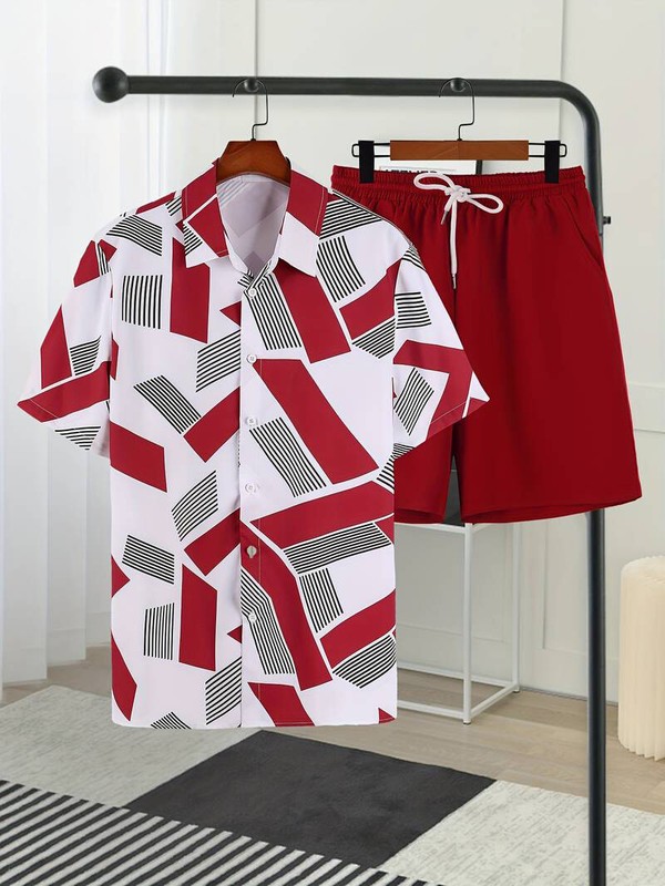 Men 2-Piece Set Summer Outfit Short Sleeve Sweatshirt T Shirts And Shorts Suits