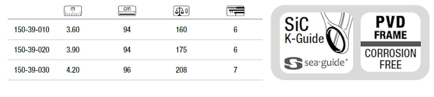 • Medium leg Sea Guide SiC guides, with tangle-free stainless steel K frame