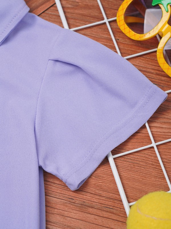 The turn-down collar button T-shirt adds a stylish and sporty touch, following the latest fashion trends for kids.