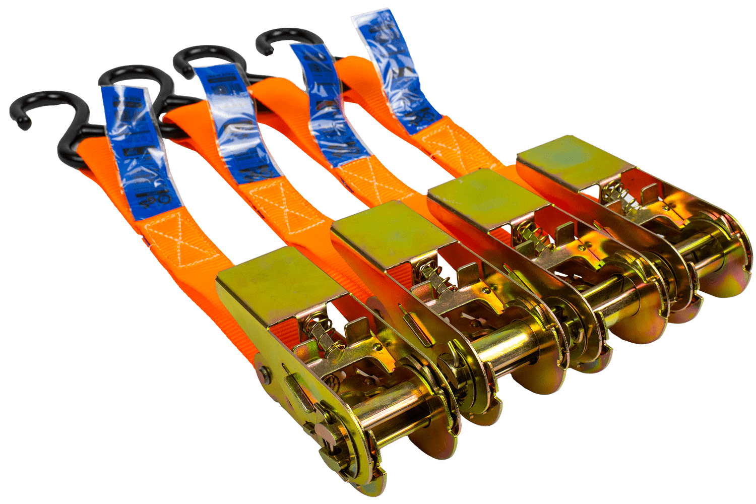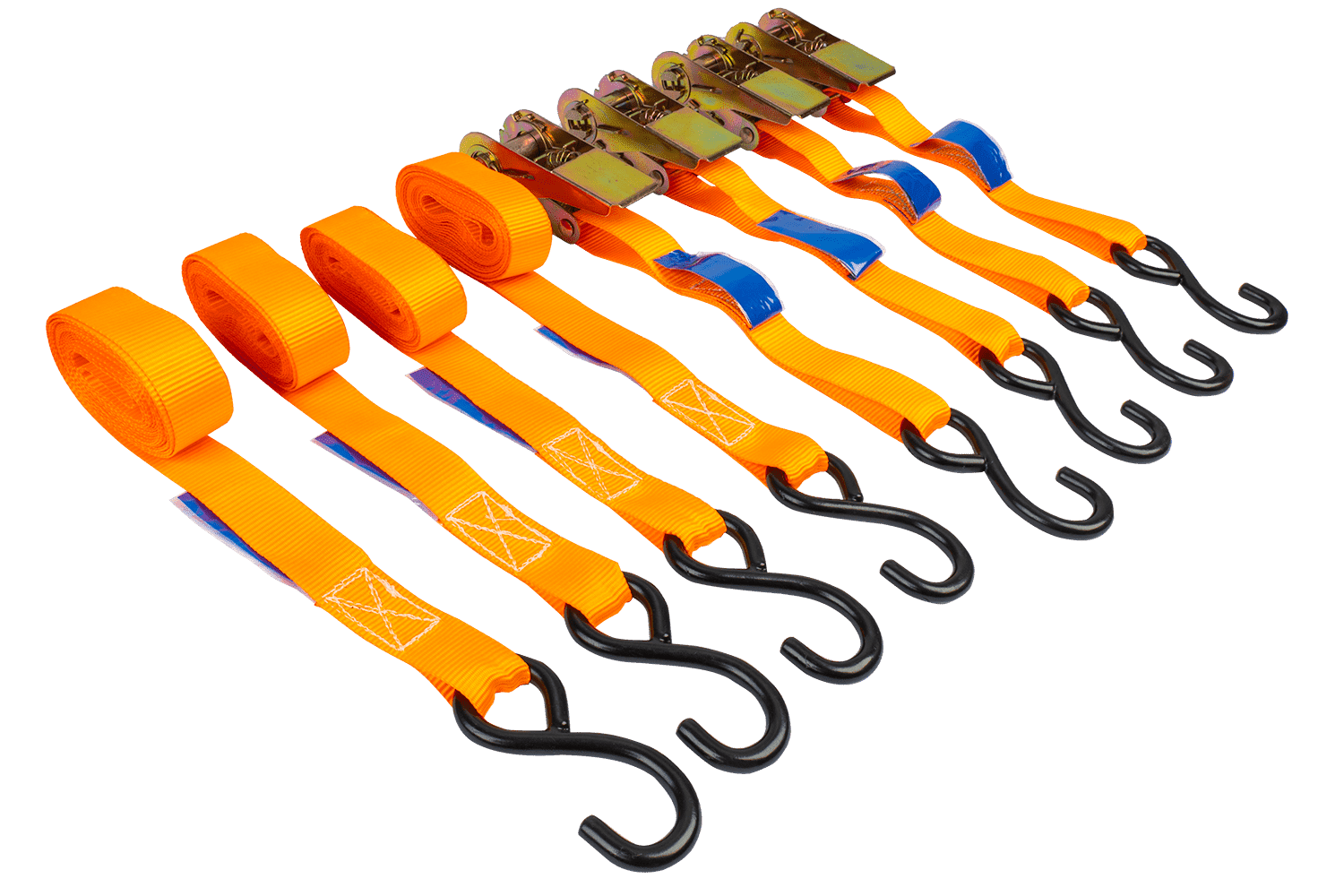 [Produzent] Set aus vier Spanngurten mit Ratsche UNITRAILER 4m/25mm/0,68t Ein Set von vier orangefarbenen UNITRAILER-Spanngurten mit Ratsche. Jeder Gurt besteht aus zwei Teilen: einem kürzeren mit eine Ratsche und einem Haken und einem längeren mit einem Gurt, der ebenfalls mit einem Haken endet. Die Gesamtlänge jedes Gurtes, einschließlich Gurtband und Schnalle, beträgt 4 Meter und ist damit ausreichend lang für eine Vielzahl von Transportanwendungen. Die Gurtbreite von 25 mm sorgt für eine optimale Pressfläche. Jeder Gurt hat eine Gurtfestigkeit von 0,68 Tonnen (680 daN), was das Set zu einer idealen Lösung für die sichere Sicherung von Waren wie Gartengeräten, leichten Baumaterialien oder Werkstattgeräten beim Transport macht. Spanngurte sind ein unverzichtbares Element, wenn es um den sicheren Transport von Gütern geht – sie helfen dabei, verschiedene Ladungen auf Anhängern, Abschleppwagen oder Transportfahrzeugen stabil zu fixieren. Es gibt sie in verschiedenen Längen und unterschiedlichen Stärken, sodass Sie ihre Stärke an das Gewicht und die Größe der zu transportierenden Last anpassen können. Ausgewählte Gurte schützen Güter vor Verrutschen und Beschädigungen und erhöhen gleichzeitig die Sicherheit aller Verkehrsteilnehmer. WICHTIG: Die Gurte dienen nur zur Sicherung der Ladung, nicht zum Aufhängen. UNITRAILER legt großen Wert auf die Qualität seiner Gurte, die aus soliden, dehnungsbeständigen Materialien bestehen. Alle Metallelemente – Haken und Spannmechanismus – sind aus langlebigem, korrosionsbeständigem Stahl gefertigt, was einen sicheren und langfristigen Einsatz bei verschiedenen Wetterbedingungen ermöglicht. Jeder Gürtel verfügt über ein klares, mit Folie gesichertes Etikett mit Informationen in Polnisch und Englisch. Aus Komfort- und Sicherheitsgründen wurde die maximale Arbeitslast auch auf der Schnalle und den Haken eingraviert, sodass Sie die Gürtelparameter auch bei beschädigtem Etikett schnell überprüfen können. Bandstärke (LC) Eine Gurtfestigkeit von 0,68 Tonnen (680 daN) gibt die maximale Belastung an, der der Gurt standhalten kann, wenn er um die Ladung geschlungen oder an zwei gegenüberliegenden Seiten der Ladung am Boden befestigt wird. Diese Befestigungsart ermöglicht eine stärkere und stabilere Sicherung der Güter, da die Kraft auf beide Teile des Bandes verteilt wird, wodurch das Risiko einer Beschädigung bei höheren Belastungen verringert wird. Gerade Zugfestigkeit (LC) Der Transportgurt hat eine Zugfestigkeit von 0,34 Tonnen (340 daN), das ist die maximale Kraft, die der Gurt bei punktueller Montage, also direkt von Punkt zu Punkt, übertragen kann. Dieser Wert beträgt in der Regel die Hälfte der Riemenstärke und bestimmt die maximal zulässige Belastung, wenn der Riemen einfach gespannt wird. Bitte beachten Sie, dass für einen sicheren Transport die Ladung symmetrisch gesichert werden sollte, d. h. die Mindestanzahl der gerade befestigten Gurte beträgt 2 Stück. Diese Lösung sorgt für eine gleichmäßige Kräfteverteilung und eine stabile Fixierung der Ladung während des Transports. Standardspannkraft (STF) Die Spannkraft beträgt 120 daN, das heißt, der Gurt drückt mit einer Kraft von 120 kg auf die Ladung und sichert sie so wirkungsvoll gegen Verrutschen beim Transport. Dies ist ein wichtiger Parameter des Transportbandes, der die Spannkraft bestimmt, die bei normaler Bandspannung mit einem Spanner (Ratsche) erreicht werden kann. Dieser Parameter ist bei der Planung der Ladungssicherung besonders wichtig, da er Auskunft über die tatsächliche Ladungssicherungskraft bei Verwendung der Standardgurtspannung gibt, was die Sicherheit der Ladung beim Transport erhöht. Standardhandkraft (SHF) Die manuelle Spannkraft beträgt 25 daN, also die Kraft, die auf den Spanner aufgebracht werden muss, um die Ladung richtig zu sichern. Dieser Wert sorgt für Ergonomie und Arbeitssicherheit und ermöglicht eine angemessene Riemenspannung ohne das Risiko übermäßiger Kraftanstrengung. Der SHF-Parameter ist bei der Auswahl eines Riemens wichtig, da er die optimale Handkraft angibt, die erforderlich ist, um die Last effektiv und stabil zu fixieren. Maximale Dehnbarkeit Unter maximaler Dehnung versteht man die prozentuale Längenzunahme des Förderbandes unter Volllast. Hierbei handelt es sich um einen prozentualen Wert, der angibt, um wie viel sich der Gürtel im Verhältnis zu seiner ursprünglichen Länge dehnen lässt. Durch die maximale Dehnung, in der Regel etwa 7 %, kann der Gurt Stöße absorbieren und plötzliche Kraftänderungen während des Transports abfedern, was die Ladung zusätzlich vor Beschädigungen schützt.