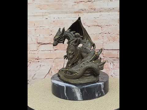 Expertly handcrafted using the age-old lost wax method, this sculpture exemplifies exceptional artistry and attention to detail. The rich dark brown patina enhances the sculpture’s depth and texture, bringing to life the fairy’s flowing garments, delicate wings, and the dragon’s intricately scaled body. Every elementmdash;from the subtle curvature of the fairy’s form to the proud arch of the dragon’s neckmdash;has been meticulously shaped to create a sense of movement and emotional connection. The interplay of light across the patina reveals new details from every angle, ensuring this artwork remains endlessly captivating.