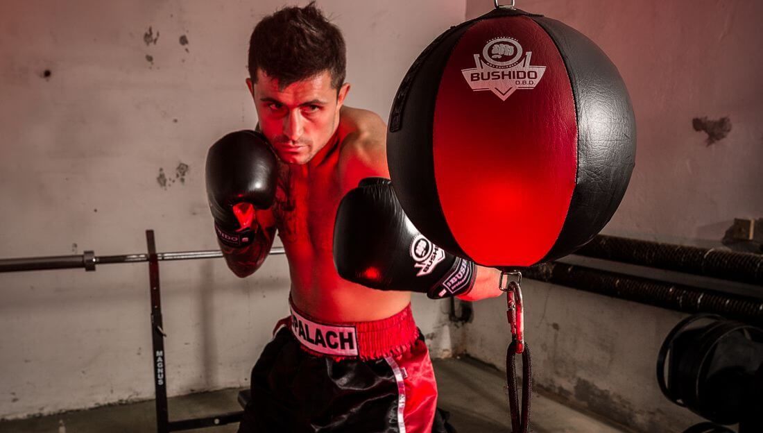 DBX Bushido reflex ball in natural cowhide for professional training of boxing techniques.