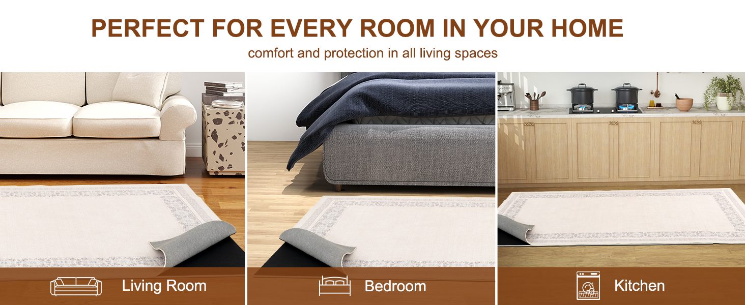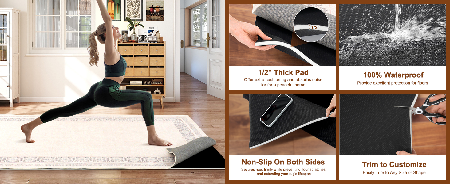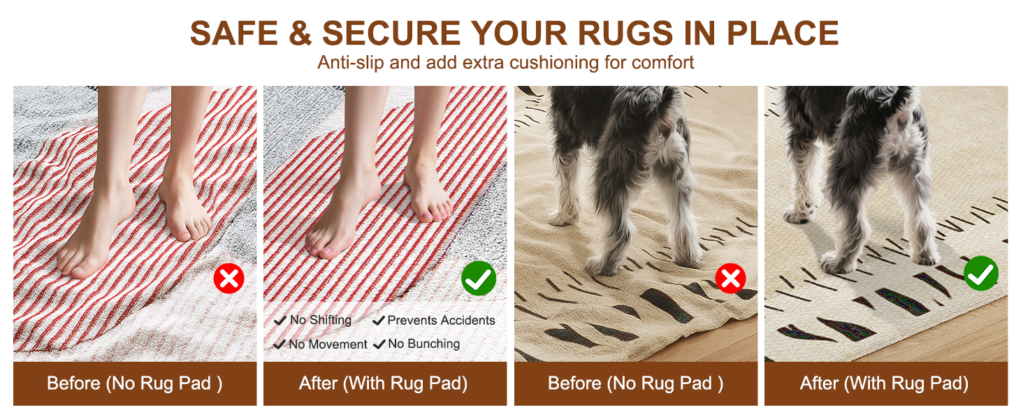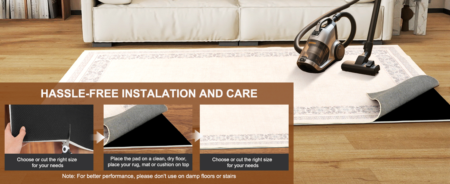 Please Note: Rug pad only, area rug not included. Due to the compressed delivery of the product, there may be wrinkles or slight deformation of the carpet mat when opening the package. Please leave it for 24 hours to restore it to its original state