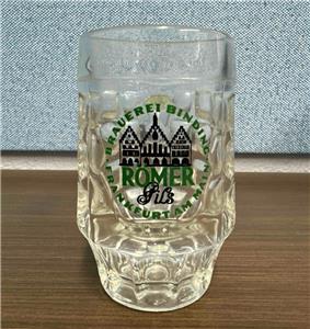Here is a Vintage ROMER Pilsner German (Frankfurt) Beer Glass Mug/Stein Made in Italy. It features the Romer name and logo with a pattern of convex circles and square shapes pressed throughout the glass. The stein measures approx. 4 3/4" high x 3 1/8" across the middle (4 3/8" including handle). It is in great condition with no chips or cracks and some minimal etching. Please see pics and excuse the reflections. Item would make an awesome gift or addition to your own collection!