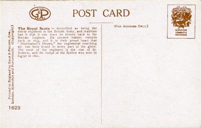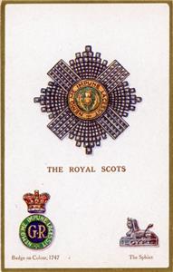 PRINTED MILITARY REGIMENTAL BADGE POSTCARD FOR THE ROYAL SCOTS.