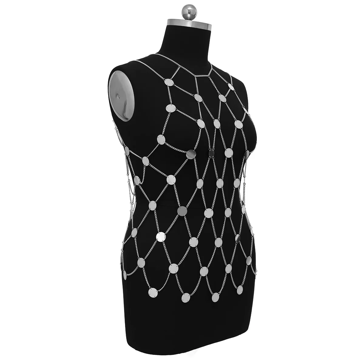 Sexy Metal Body Chest Chain Sequin Dress Bra Bikini Silver Harness Mesh Chain Beach Summer Body Jewelry For Women Swimwear Hot