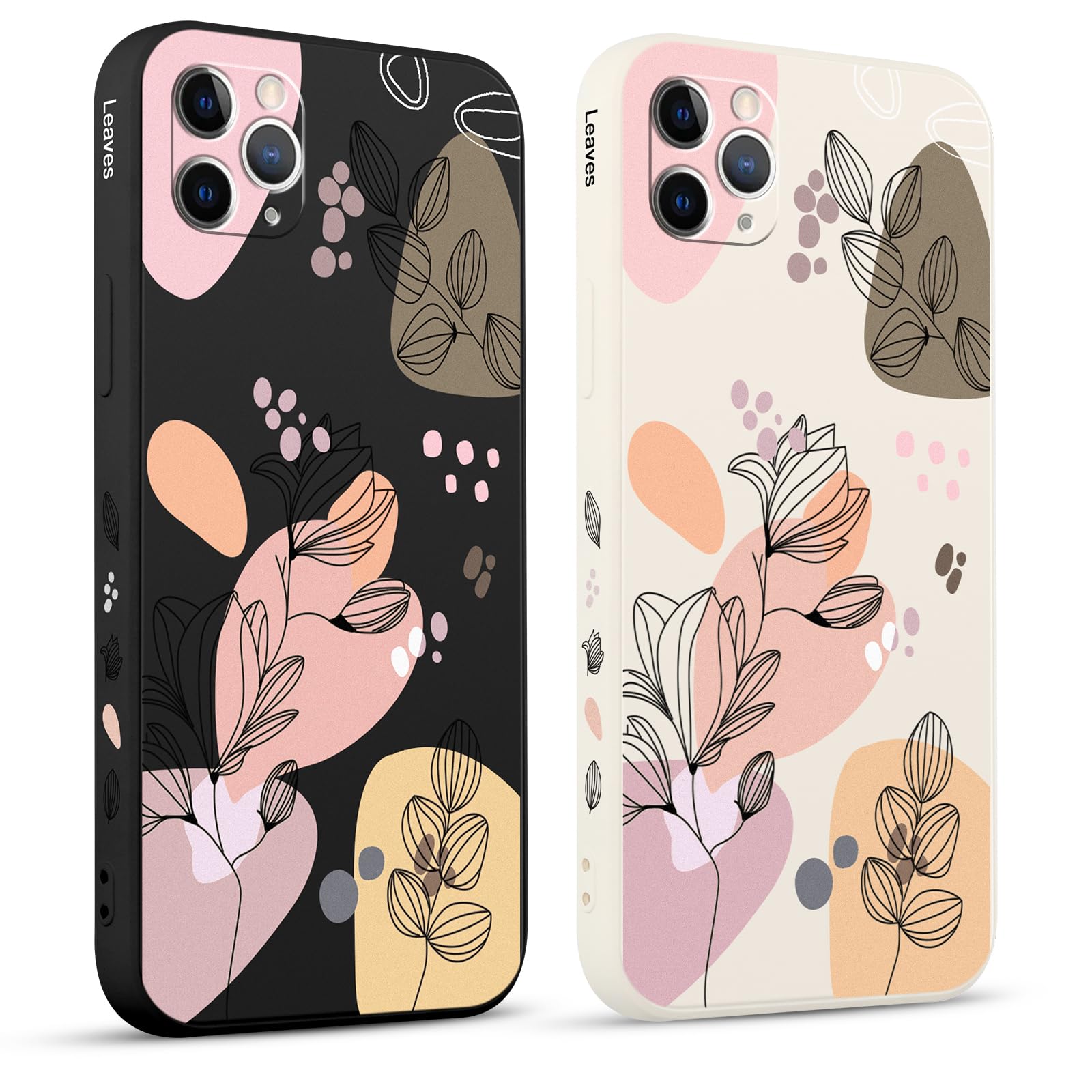 2 Pièces Coque pour Apple iPhone 11 Pro Max 6.5", Etui avec Amusante Fleur Feuilles Latéral Mignon Dessin Case Souple Silicone Housse Téléphone en Souple Fille Beau Aesthetic Cover
