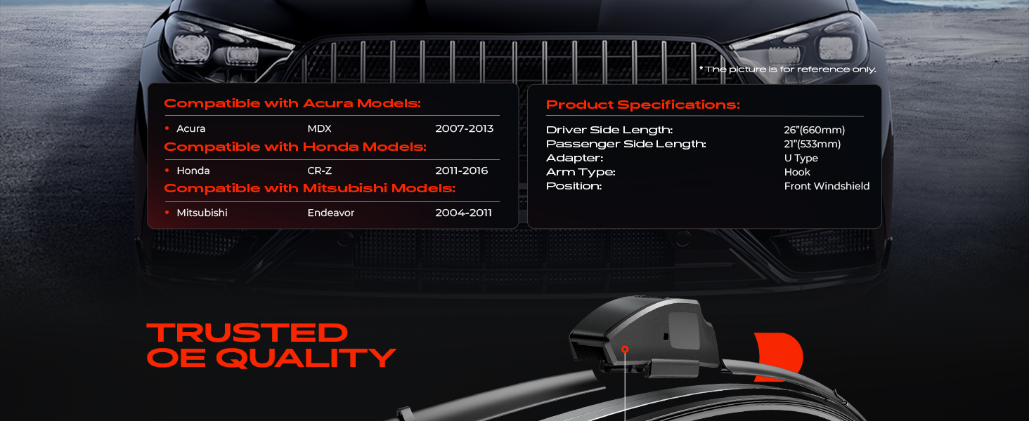 A-Premium 2x Front 26" & 21" Windshield Wiper Blades for Honda CR-Z Acura MDX