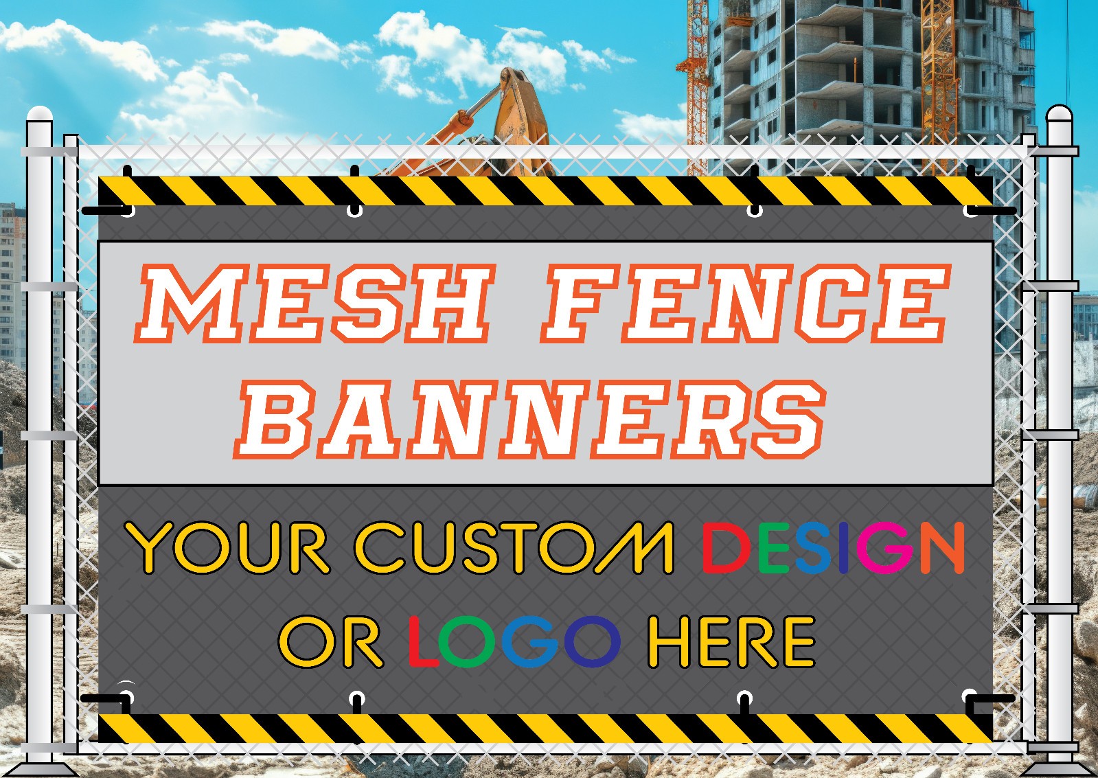 Increase branding impact and improve site presentation with the Custom Mesh Banner Fence Panels, engineered to provide durable, weather-resistant, and highly visible outdoor coverage for construction zones, development projects, event perimeters, and commercial spaces. Available in two practical height options: 1600mm (1.6m) and 1800mm (1.8m), these banners offer excellent flexibility for various fence types and screening needs. Length variations, including 2400mm (2.4m), 4800mm (4.8m), 7200mm (7.2m), and 10m options, ensure seamless coverage across one to four fence panels. Built from 300gsm high-strength woven polyester mesh, the material allows controlled airflow to reduce wind pressure on fencing while maintaining strong print clarity. The UV-stabilised full-colour digital printing ensures long-lasting vibrancy, while welded edges and reinforced eyelets provide secure installation. Ideal for builders, contractors, developers, event organisers, and businesses seeking large-format outdoor advertising, these banners offer a reliable balance of strength, visibility, and professional presentation. Artwork proofing is available; select Yes or No based on your project requirements. Constructed with 1000D × 1000D heavy-duty denier fibres for superior toughness and stability. A 12 × 12/inch thread count delivers a dense, reinforced weave ideal for outdoor and industrial use.DURABLE CONSTRUCTION: Manufactured from 300gsm high-strength woven polyester mesh with a 1000D x 1000D denier rating, this banner material offers exceptional resilience in outdoor environments. The mesh design allows partial airflow to reduce wind load while maintaining structural stability, ensuring long-term performance on construction fences, temporary barriers, and event perimetersMULTIPLE SIZE OPTIONS: Available in two height selections, 1600mm or 1800mm, and four practical length configurations: 2400mm, 4800mm, 7200mm, and 10000mm, these banners provide versatility for covering one to four fence panels. The precision-fitted sizing ensures consistent tension, clean presentation, and uninterrupted visual impact across any panel layoutHIGH-QUALITY PRINTING & FINISH: Printed using UV-stabilised, high-resolution, full-colour digital inks, the mesh delivers sharp graphics that remain vibrant under sun exposure and adverse weather. Finished with welded edges and durable metal eyelets, the banners maintain reliable attachment points, preventing tearing or fraying during outdoor useCUSTOMISABLE DESIGN OPTIONS: Create striking visuals by uploading your own artwork or selecting an artwork proof option for professional assistance. Ideal for branding, safety messaging, promotional graphics, and construction project advertising, these banners can be tailored to reflect your corporate identity or communication requirementsVERSATILE OUTDOOR APPLICATIONS: Perfect for construction sites, large-scale developments, roadside fencing, sporting events, trade show boundaries, community festivals, and long-term outdoor advertising. The semi-transparent mesh ensures airflow while providing strong visual coverage, offering an effective and practical signage solution in various environmental conditions