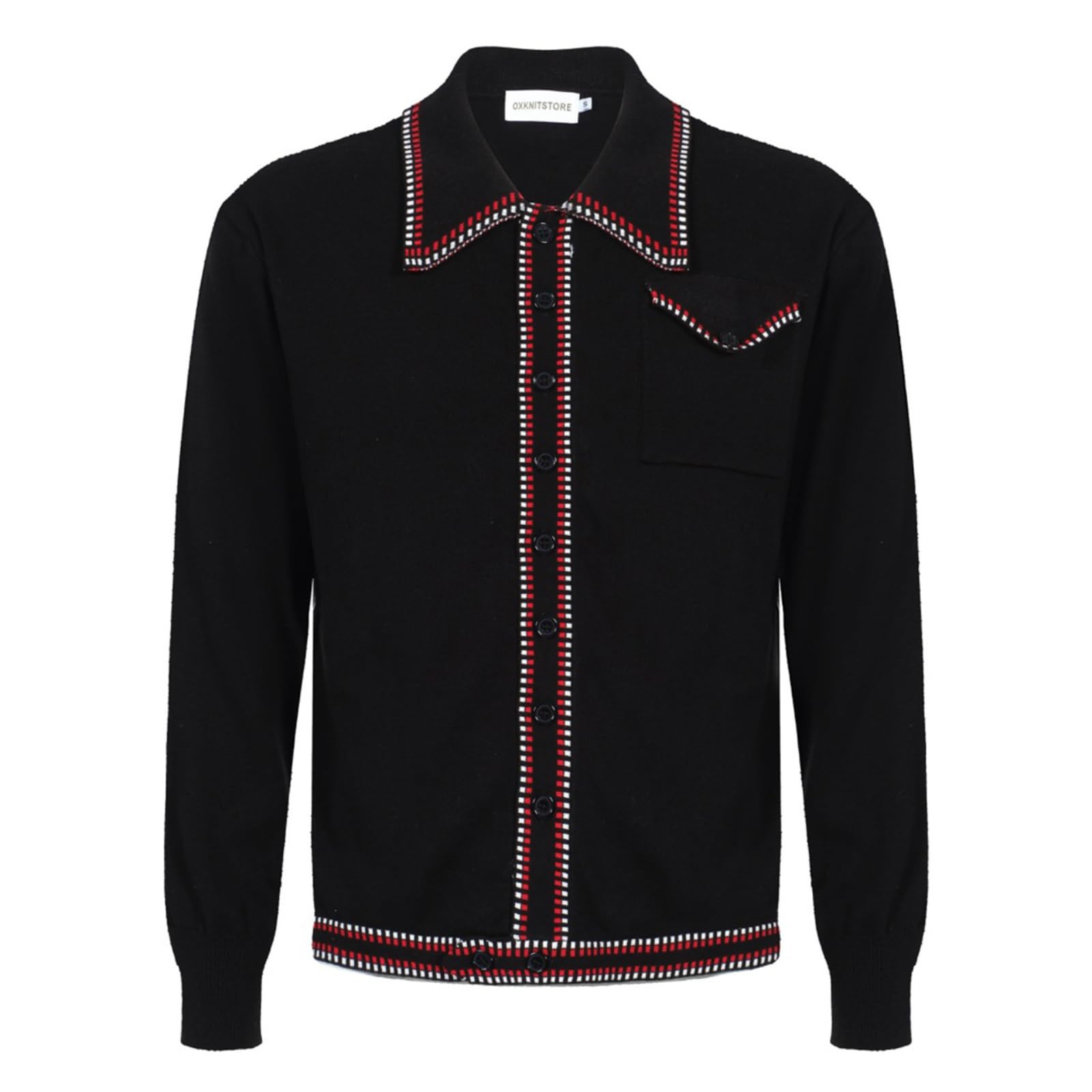 OXKNIT Pull rétro en tricot pour homme - Style décontracté - Noir - Manches longues - Col à revers avec boutons, Noir , M