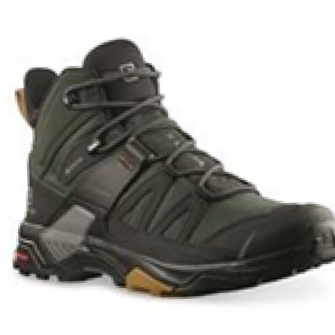 Power through technical hikes and demanding climbs in the Salomon X Ultra 4 Mid GORE-TEX Hiking Boots for Men. Featuring a new Advanced Chassis design, this boot blends the agility of a trail-running shoe with the stability, grip, and waterproof protection needed for mixed trails and technical terrains. Lighter and more agile to keep you more nimble on uneven terrain, the X Ultra 4 Mid starts with water-resistant uppers made of a durable polyurethane-coated leather and textile protected up front with a sturdy rubber toe cap. Smooth textile linings and GORE-TEX waterproof/breathable membranes surround the feet with breathable, 100% waterproof comfort. Synthetic footbeds give hikers supportive cushioning, while the boots' ADV/C chassis provides targeted protection and optimized stability without limiting mobility. Non-marking All Terrain Contagrip rubber outsoles grab terrain, even if wet or slippery, to give you more control - especially on descents. Avg. Ht.: 4.9" Avg. Wt.: 14.99 oz. Imported.
