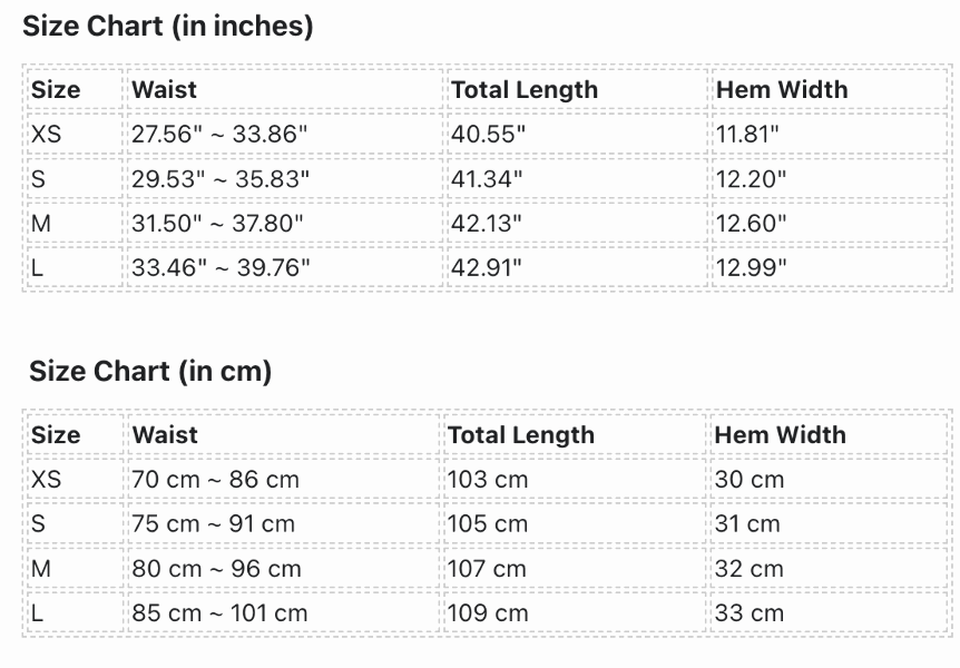 | M | 80 cm ~ 96 cm | 107 cm | 32 cm |