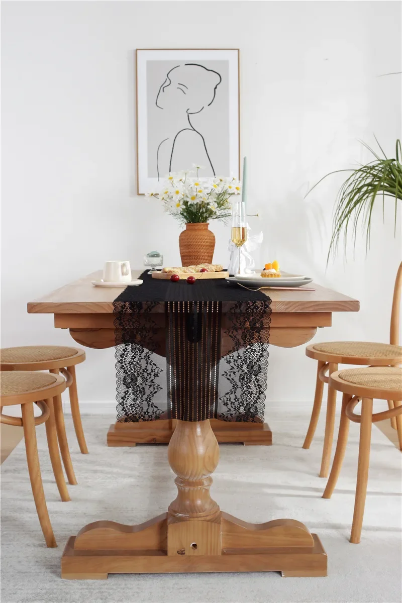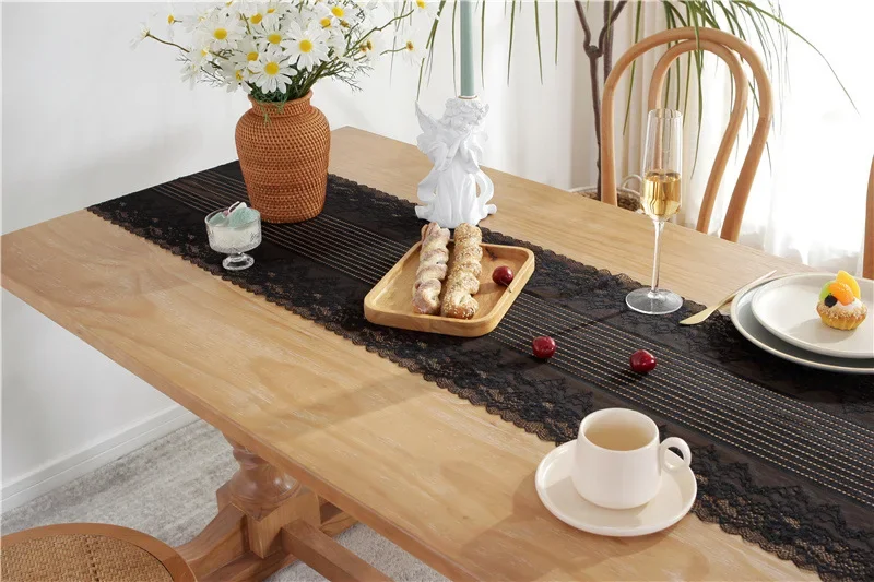 French Romantic White Black Lace Table Runner Wedding Decoration Coffee Table Path Mariage Bridal Shower Home Party Ornament