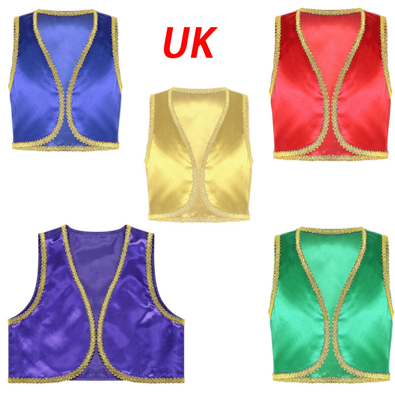 UK Kid Boys Arabian Prince Fancy Dress Halloween Costume Vest w/Harem Pants Set