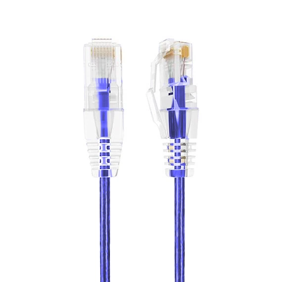The Slim Cat6a 550 MHz UTP Snagless Patch Cable, Purple offers top-tier data transmission in a space-saving design, making it ideal for high-density environments like data centers and enterprise networks. At 60% thinner than standard Cat6a cables, its 28 AWG construction improves airflow, simplifies cable management, and supports up to 10Gbps speeds. The cable features 50-micron gold-plated RJ45 connectors and a snagless clear boot for reliable, durable connections. Built with 100% bare copper and certified to EIA/TIA standards by UL and ETL, it ensures strong signal integrity and industry-grade compliance. RoHS compliant and styled in sleek black, this cable combines performance, efficiency, and professional aesthetics for modern networking setups.