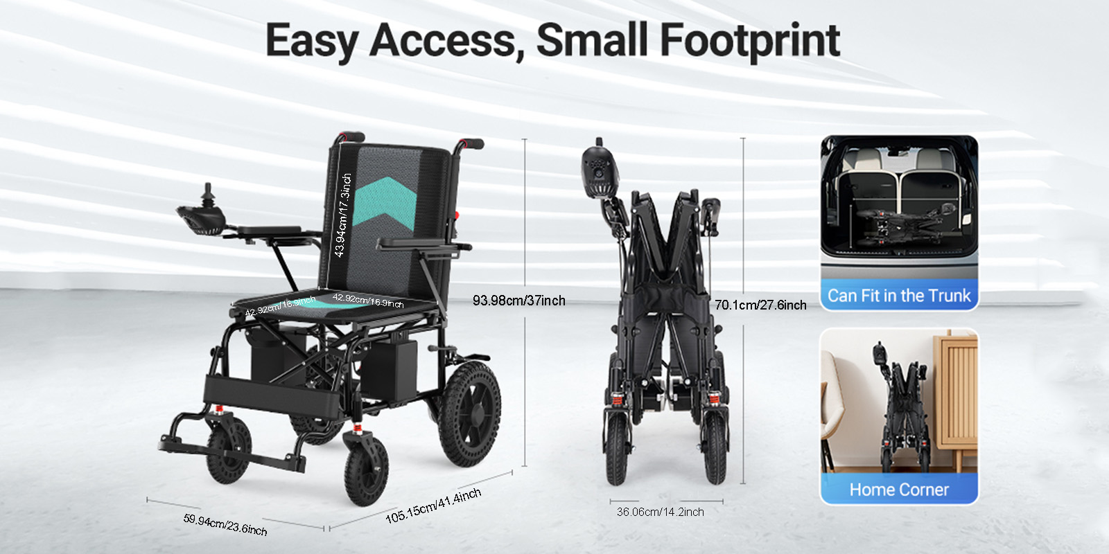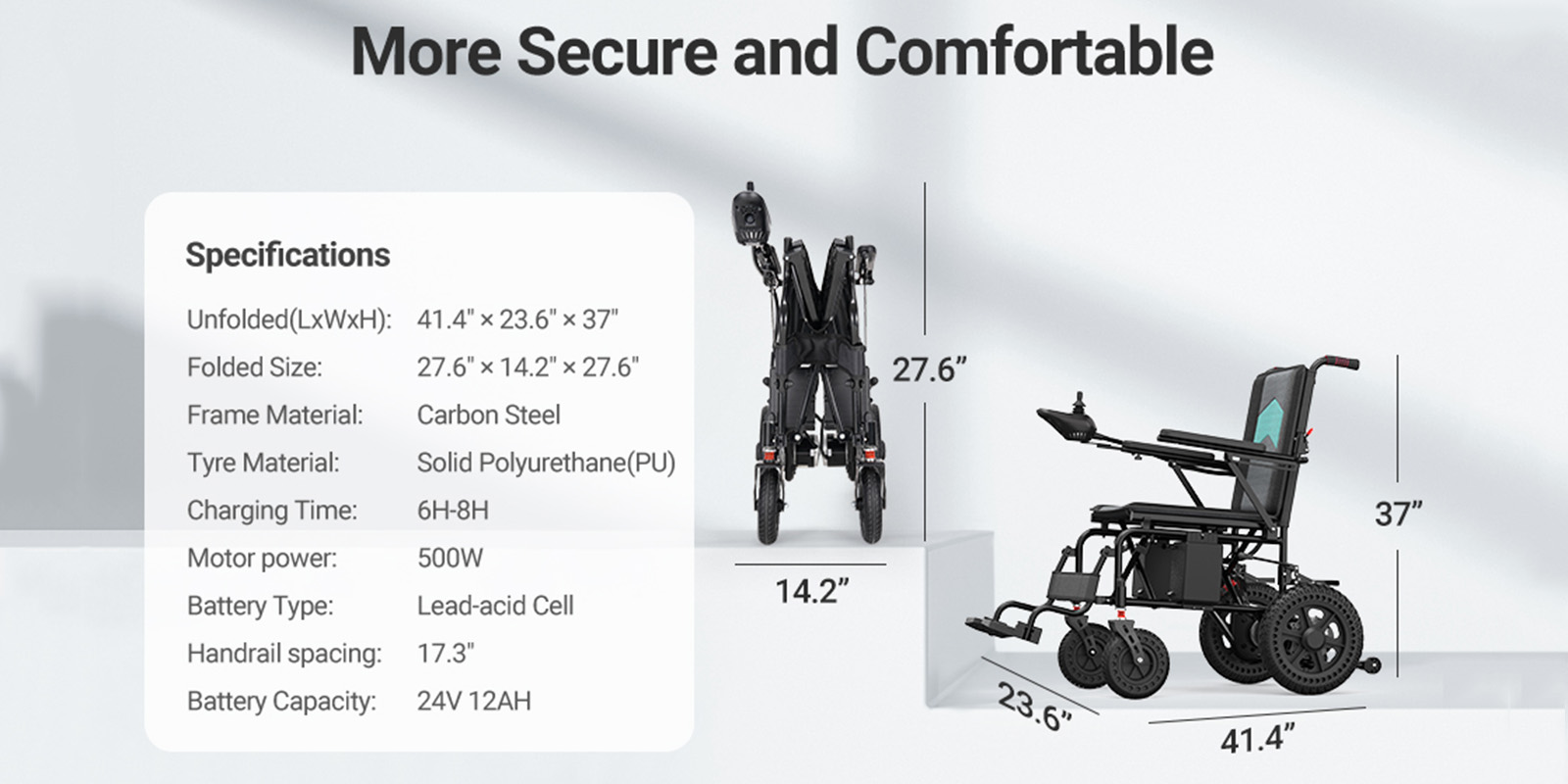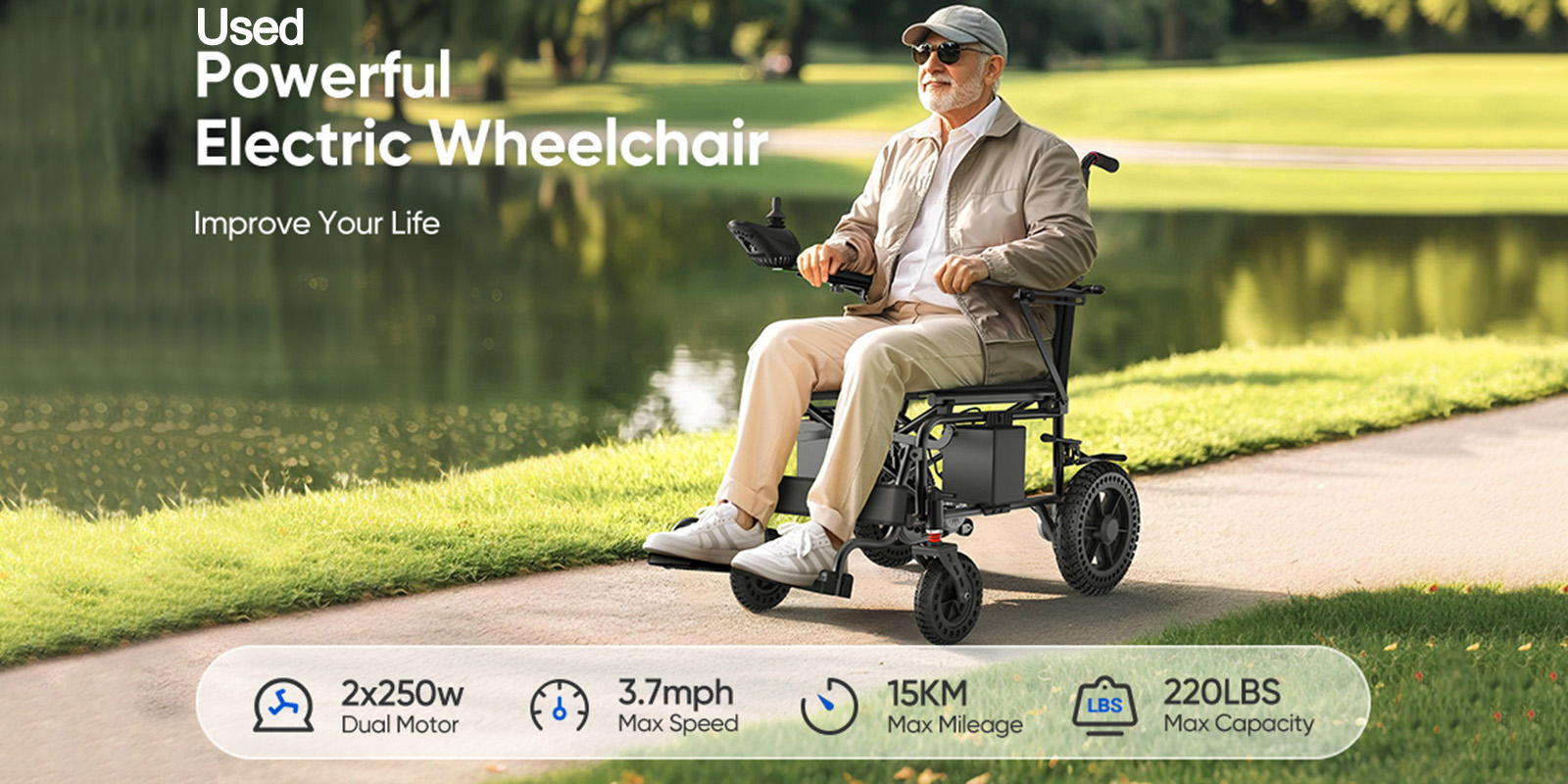 Used Electric Wheelchair Foldable All-Terrain Wheelchair Capacity 220lbs for Seniors Adults
