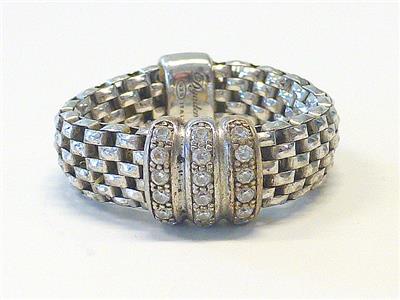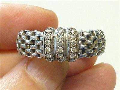 Dyadema 925 Italy Sterling Silver CZ Stretch Mesh Ring Size 10 Vintage