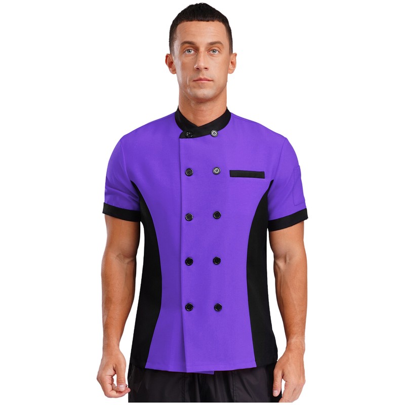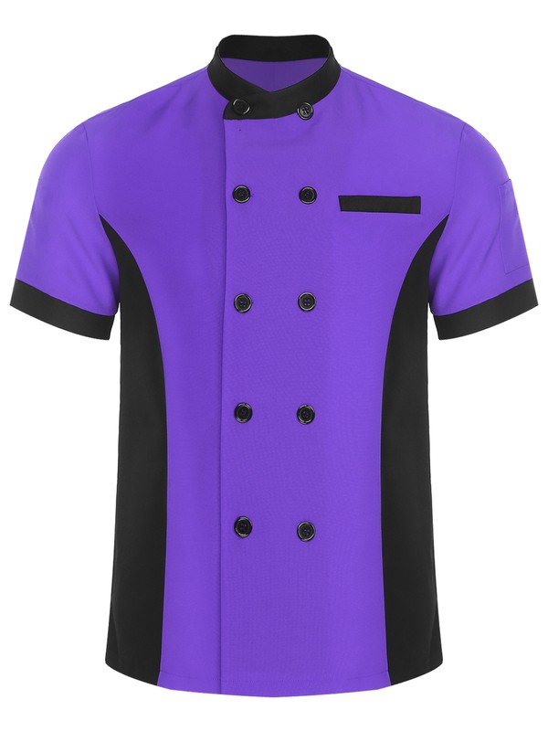 Unisex short sleeve chef jacket with a humanized arm pocket is practical for carrying pens and thermometers.