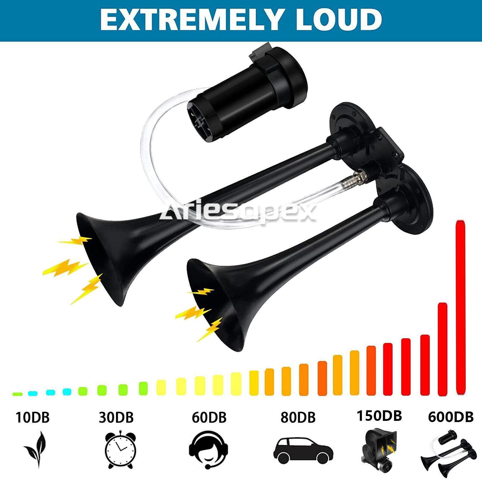 Dual Trumpet Air Horn Compressor Kit will produce a powerful 178DB loud tuned train sound air horn that blares out a warning that can't be ignored.