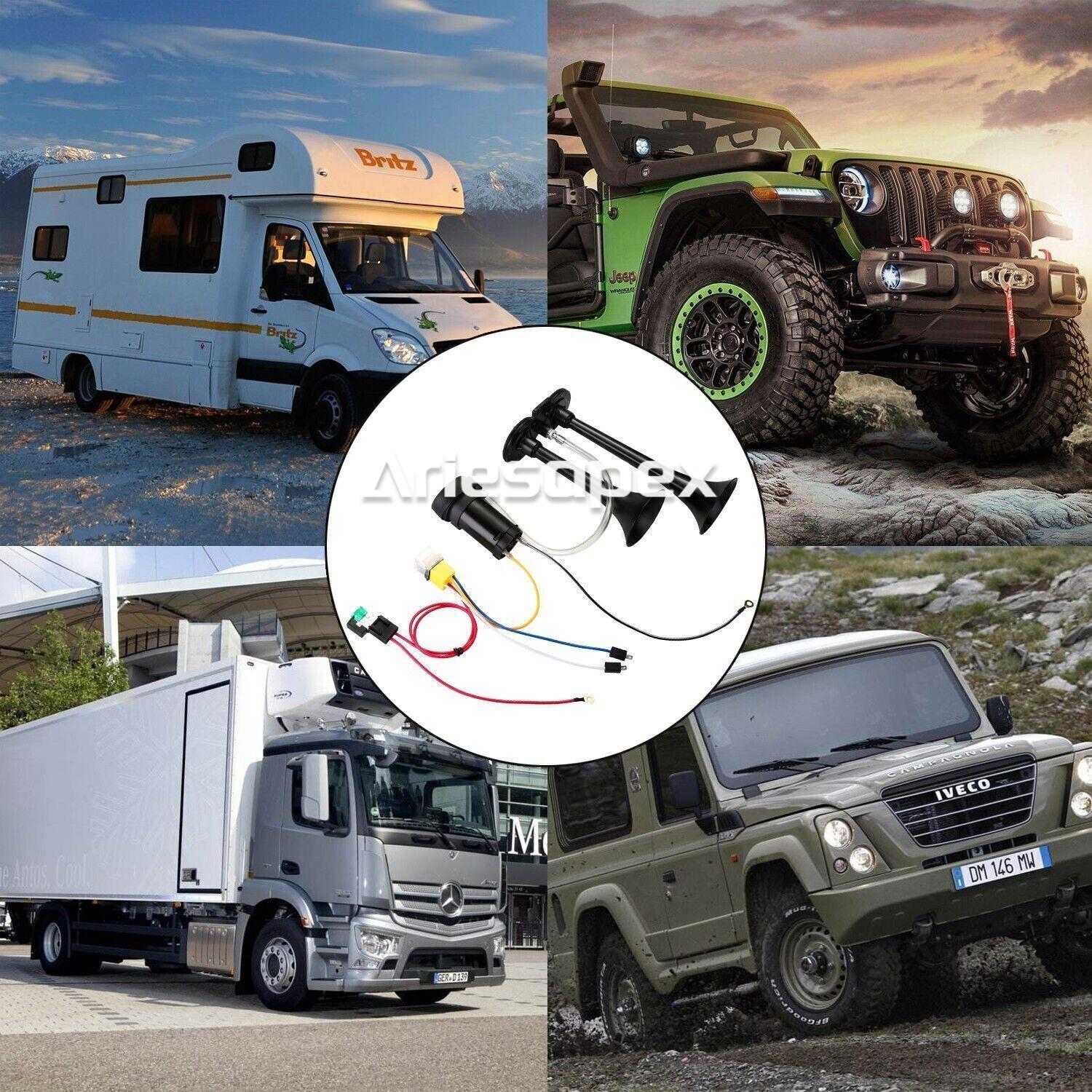 Dual Trumpet Air Horn Compressor Kit is suitable for all 12V vehicles such as cars, boats, trucks, tractors, vans and etc.