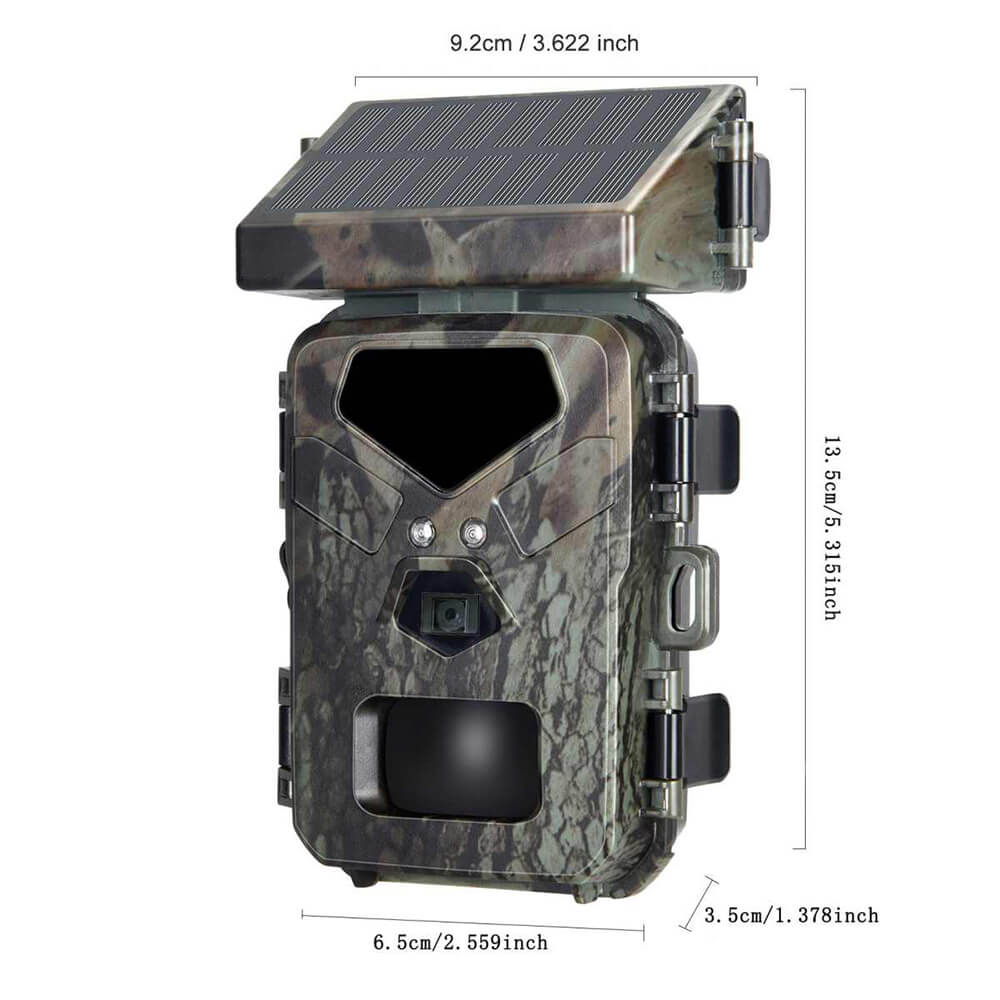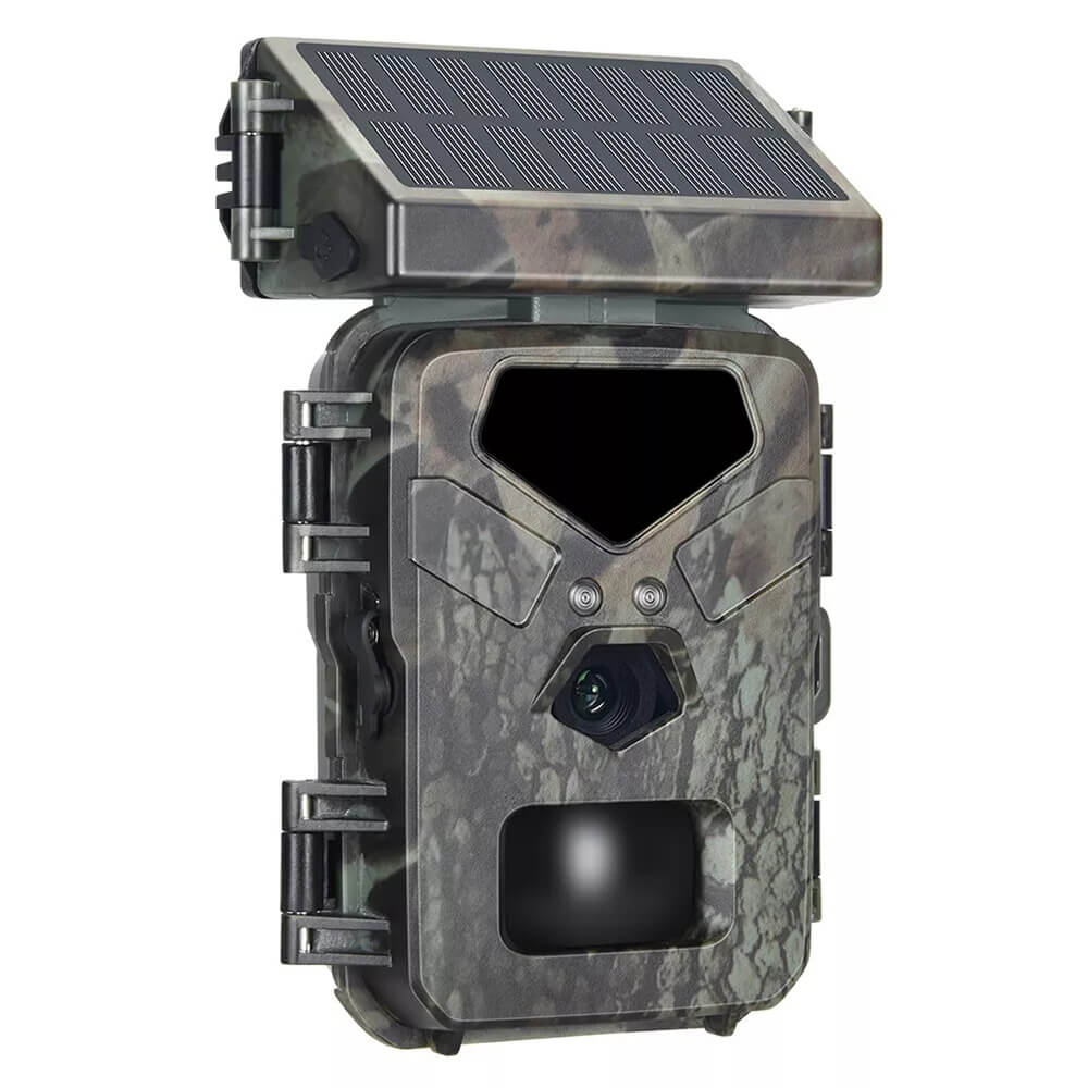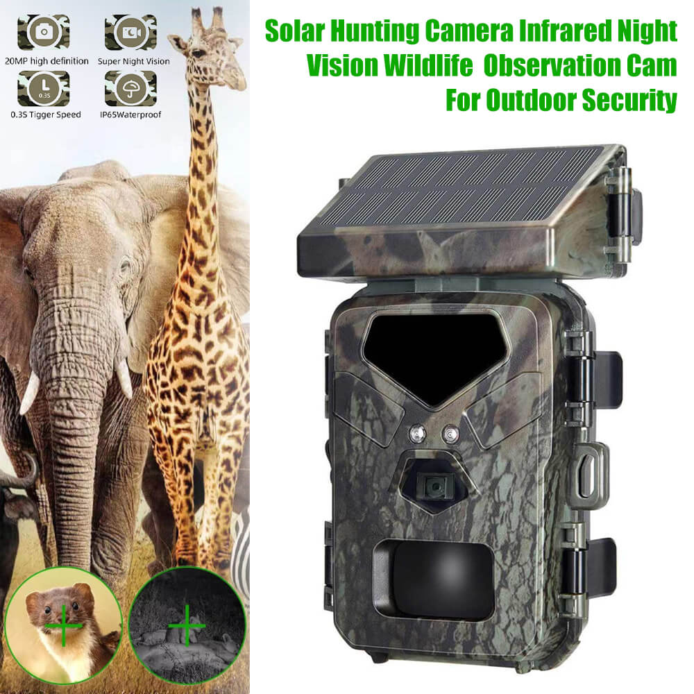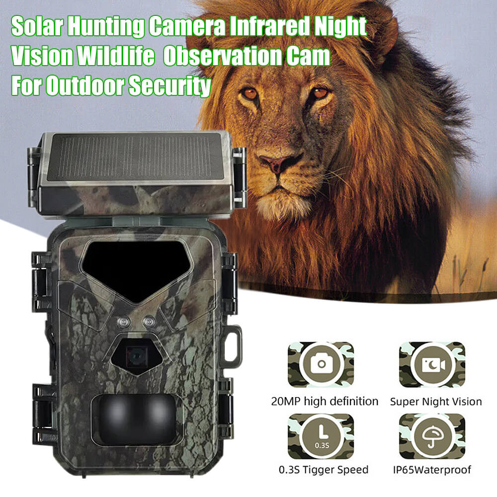 Solar Panel Hunting Camera Infrared Induction Automatic Monitoring Wildlife Trap Trail Camera 20MP 1080P Video Photo Recorder. The integrated solar panel technology means the days of being a slave to your trial camera's battery life are over. The internal lithium battery is powered by the solar panel, meaning potentially unlimited battery life is within reach.