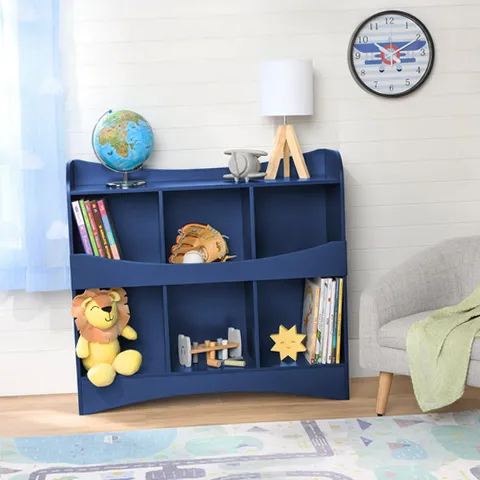Kids bookcase with six storage cubbies across two shelves