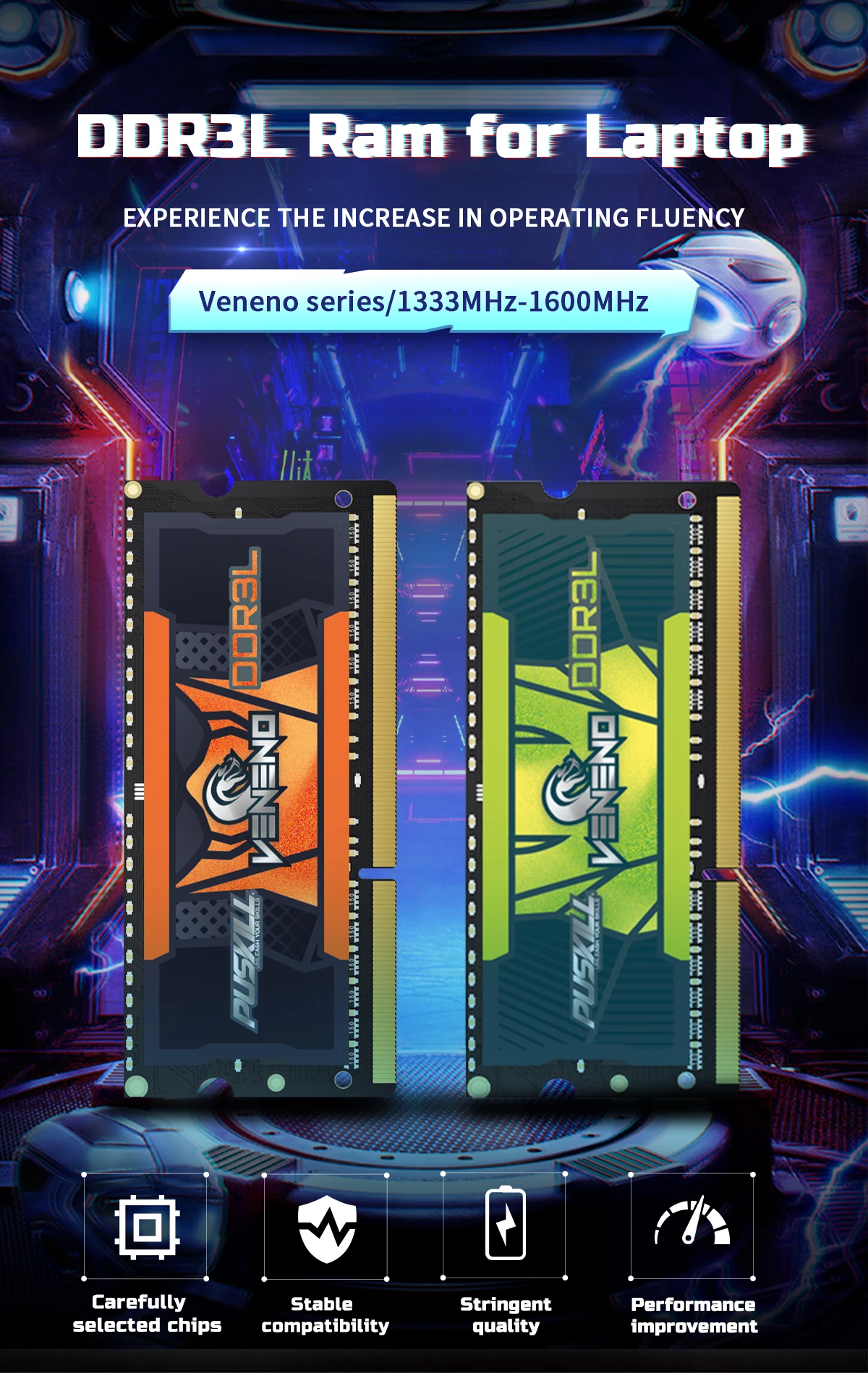• Product: Puskill Killblade Notebook Memory 32/16/8/4gb Ddr4 Ddr3L 3200/2666/1600/1333mhz Cl22/Cl19/Cl17/Cl11/Cl9