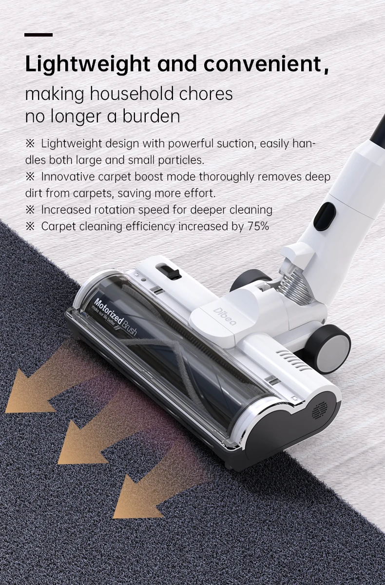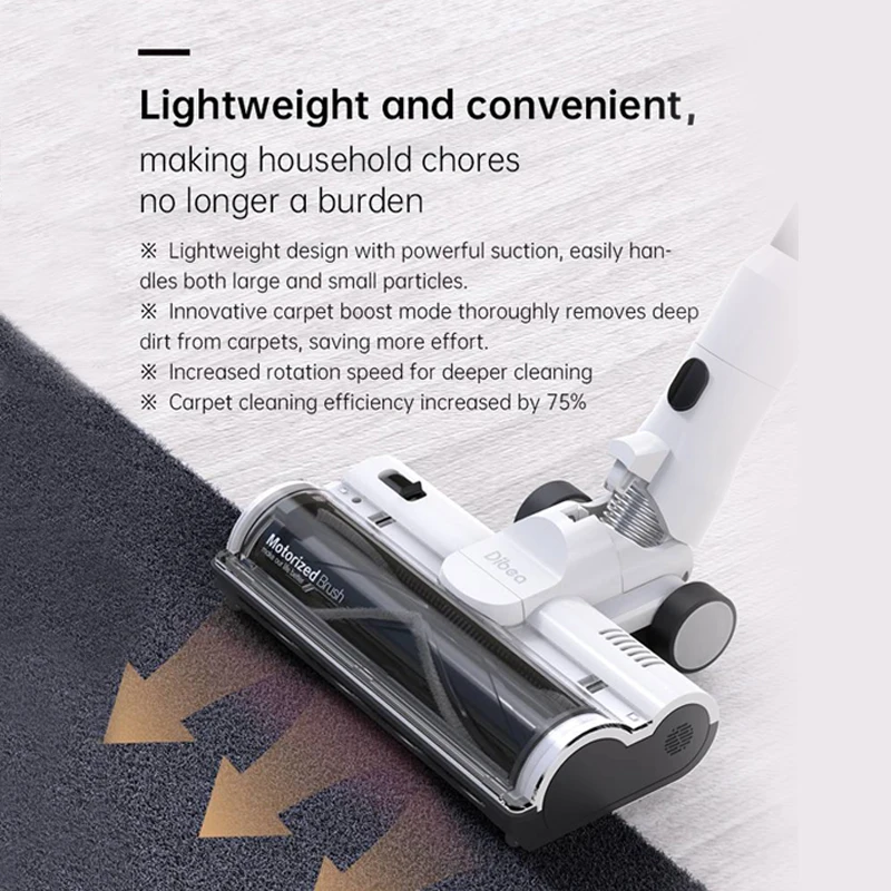 *Innovative floor brush structure: Traditional vacuum cleaner rollers require lifting from the bottom of the brush, often causing inconvenience for users and increasing the risk of contamination. Dibe innovatively adopts a front-loading design, making it easier to handle and less prone to contamination.