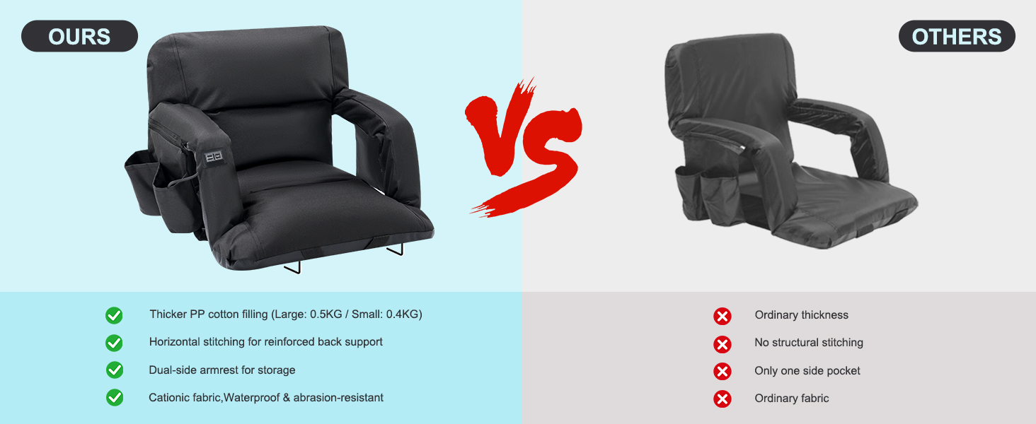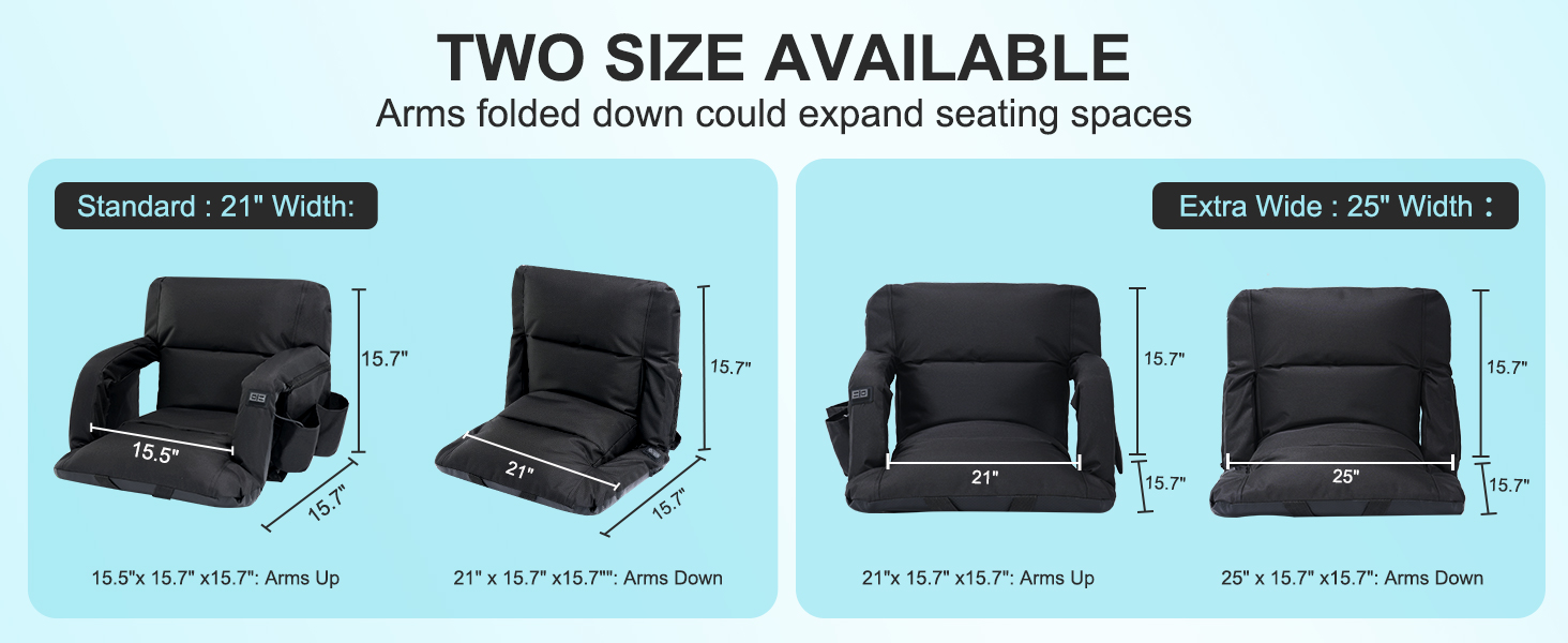 Adjustable Support for Reduced Fatigue: 6 recline positions bleacher seats, Find your perfect angle to combat back strain. The wide, cushioned backrest and supportive armrests provide personalized comfort throughout the entire event