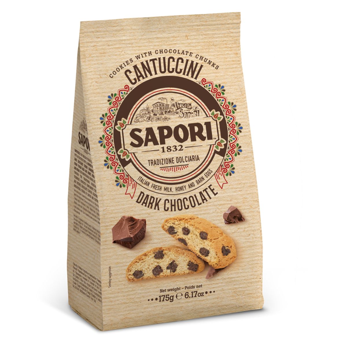 Tauchen Sie ein in die Welt der echten toskanischen Backtradition – mit den Sapori Cantuccini dunkle Schokolade genießen Sie ein traditionell süßes Gebäck, das italienische Handwerkskunst mit feiner Zartbitterschokolade verbindet. Knusprig, aromatisch und einfach unwiderstehlich – perfekt für alle, die intensiven Schokoladengenuss lieben.