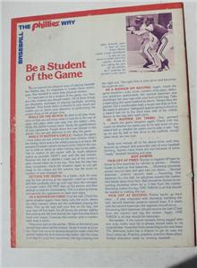 Here is a great 1978 Philadelphia Phillies Publication The Phillies Way Playing tips from Philadelphia Phillies and 27 uncut trading cards . It is missing front and back cover and Garber Lerch Harmon cards have folds. It measures about 11 inches tall by about 8 1/2 inches wide. It pictures Philadelphia Phillies on front. Grab this great collectible while you still can.