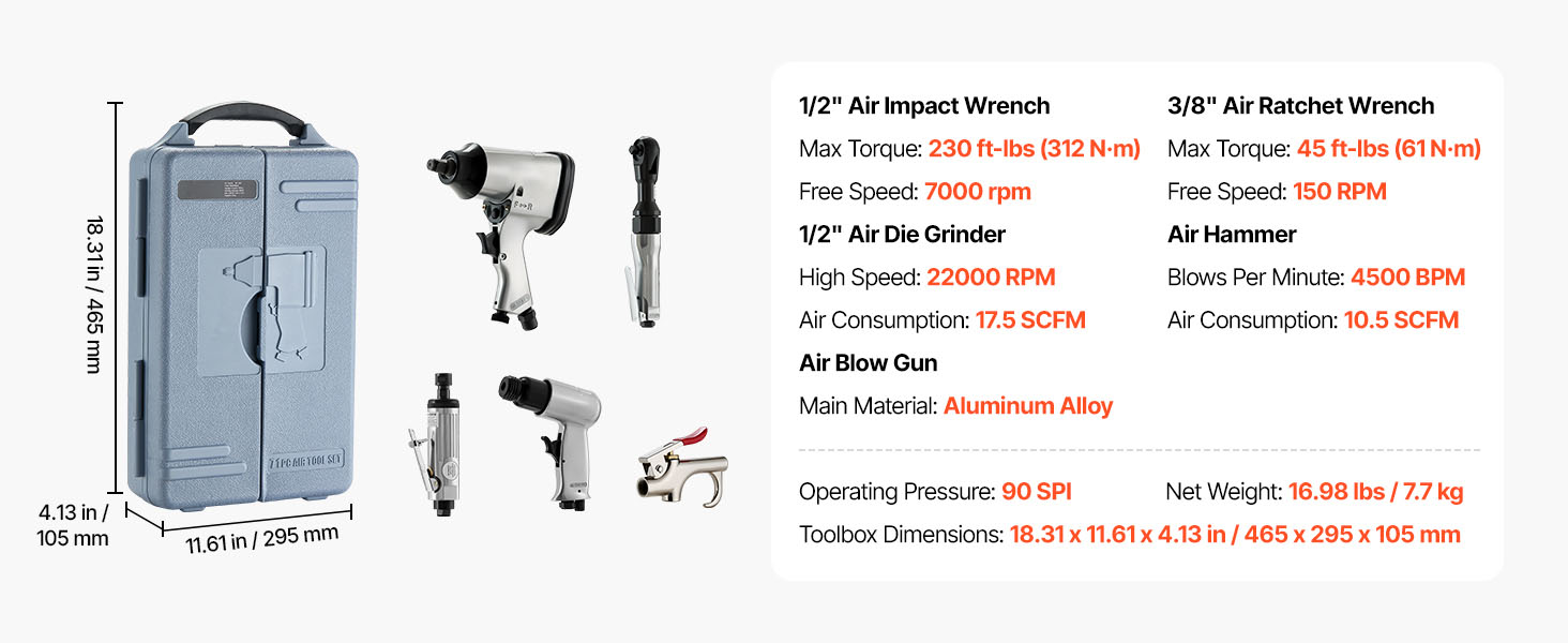 - Comprehensive Air Tool Kit: Simplify your tasks with this versatile air tool set, designed to tackle a variety of jobs such as tire changes, vehicle repairs, routine maintenance, and home improvement projects. Suitable for both professionals and DIY enthusiasts.