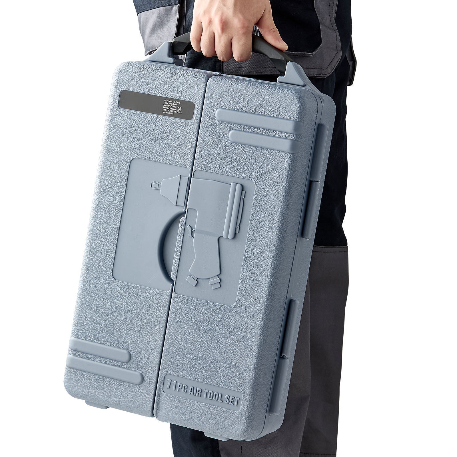 This professional-grade air tool and accessory set is equipped with a durable carrying case, ensuring convenient portability and neat storage.