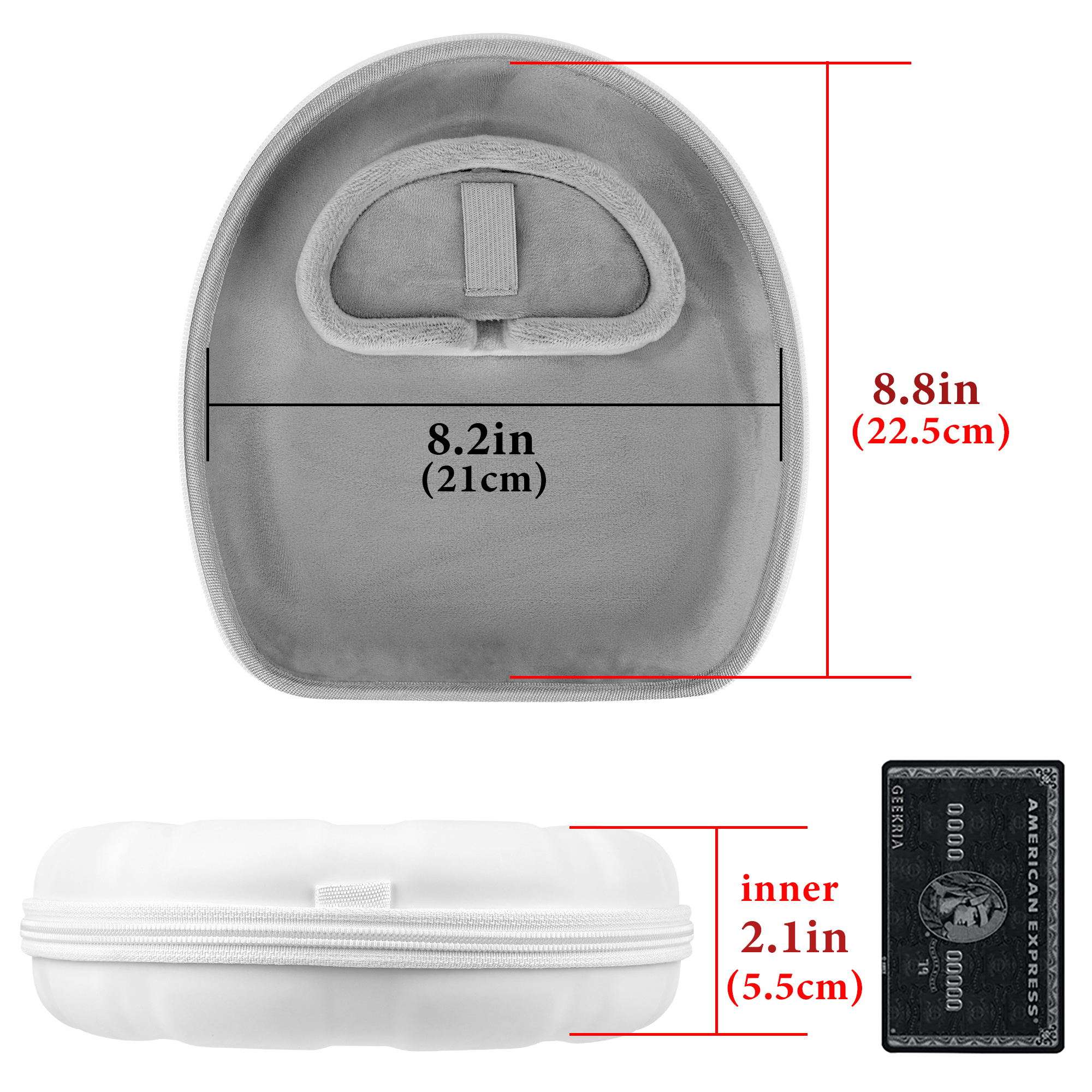 - Maximum compatible headphones dimensions (case inside): 8.8 x 8.2 x 2.1 inches.