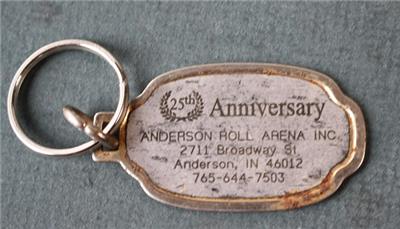 Here is a great 25th Anniversay Anderson Roll Arena Broadway in Anderson Indiana Metal Oval Made in the USA Keychain. It is Awesome. It is marked on front and back-Nice Used Condition-SEE ALL PHOTOS. It measures about 1 inches tall with medal by about 2 1/4 inches long. Grab this great vintage Collectible while you still can it will not last long.